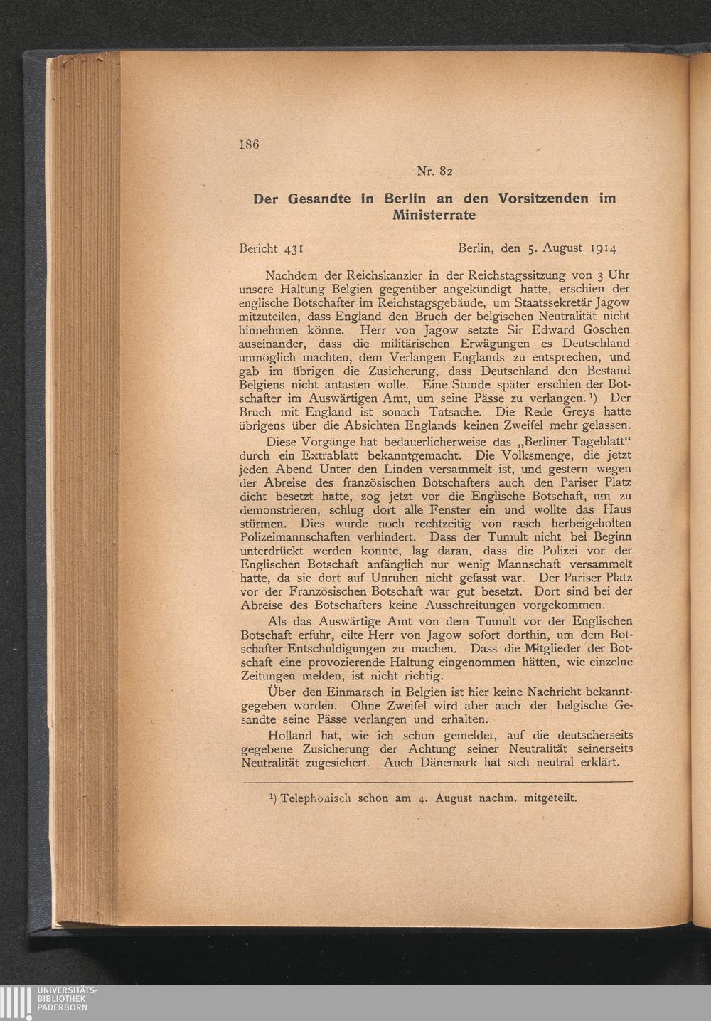 Die Gesandtenberichte 1914