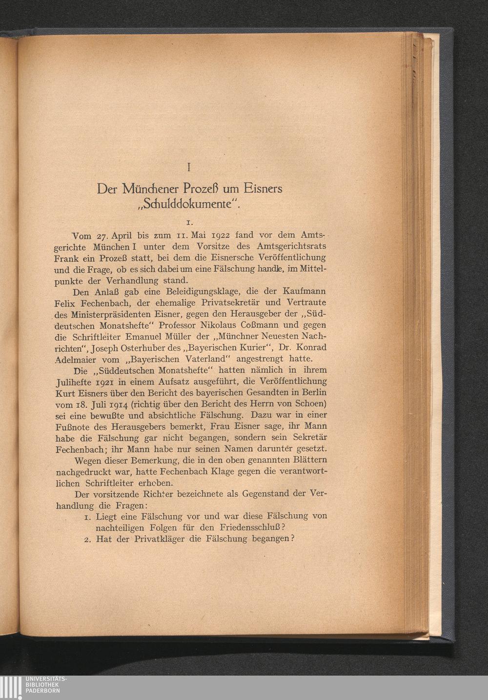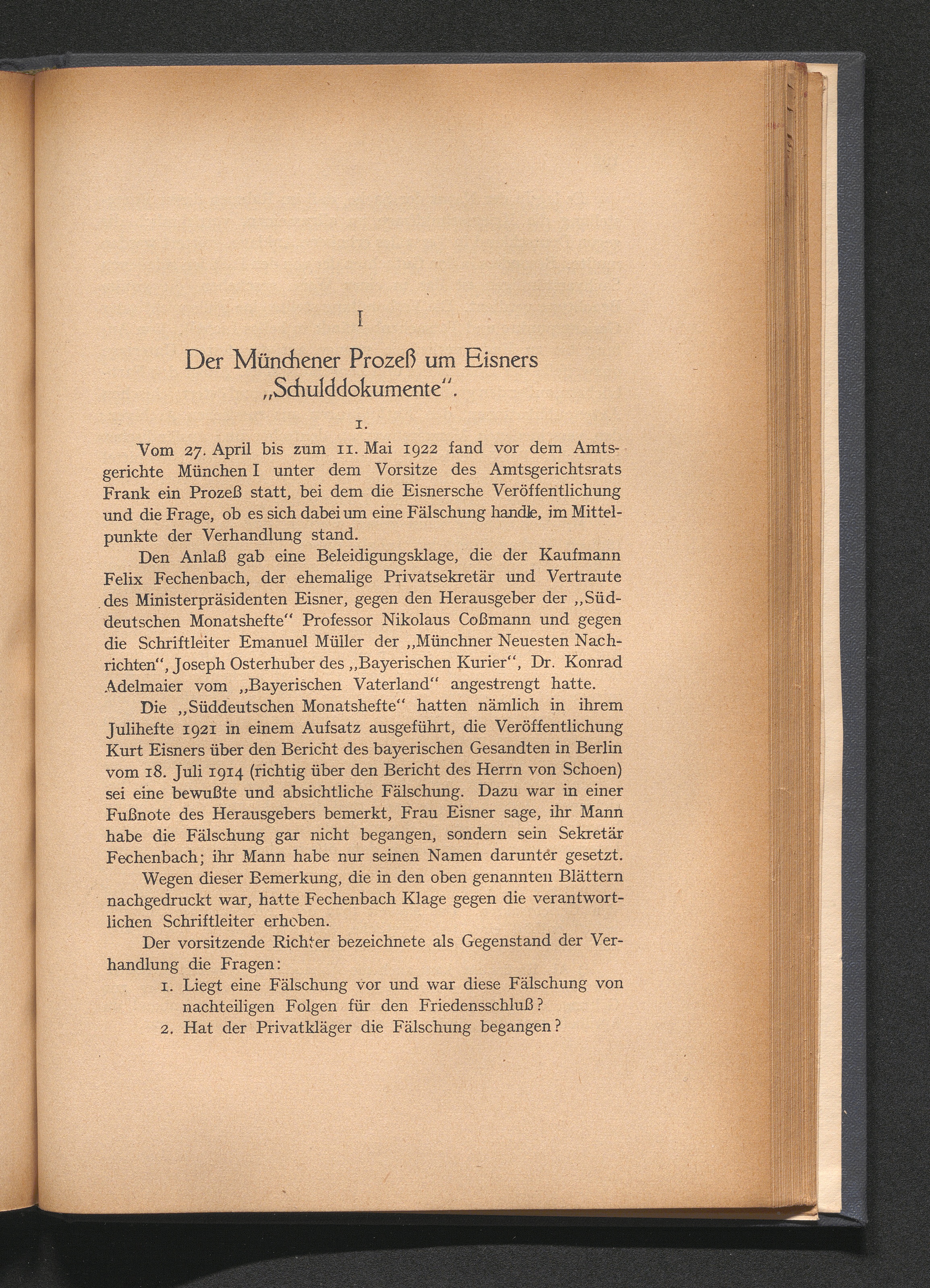 I. Der Münchener Prozeß um Eisners „Schulddokumente“