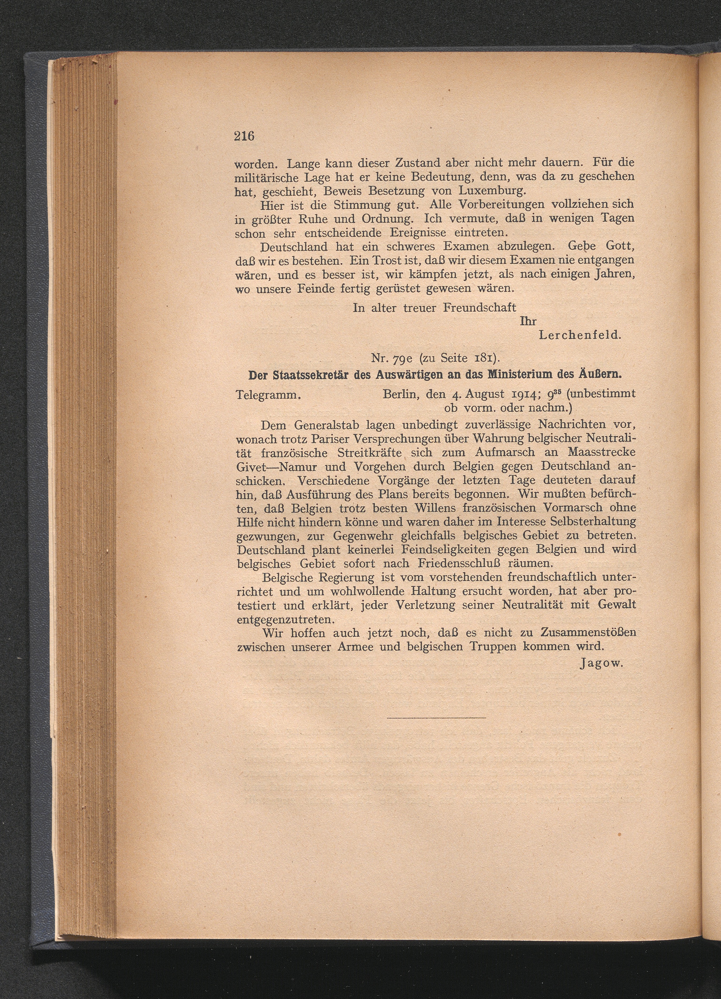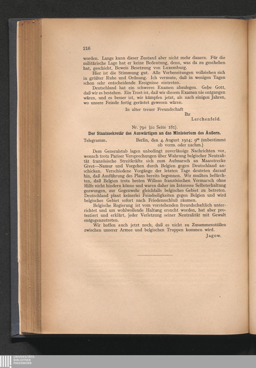 Nr. 79e (zu Seite 181). Der Staatssekretär des Auswärtigen an das Ministerium des[...]