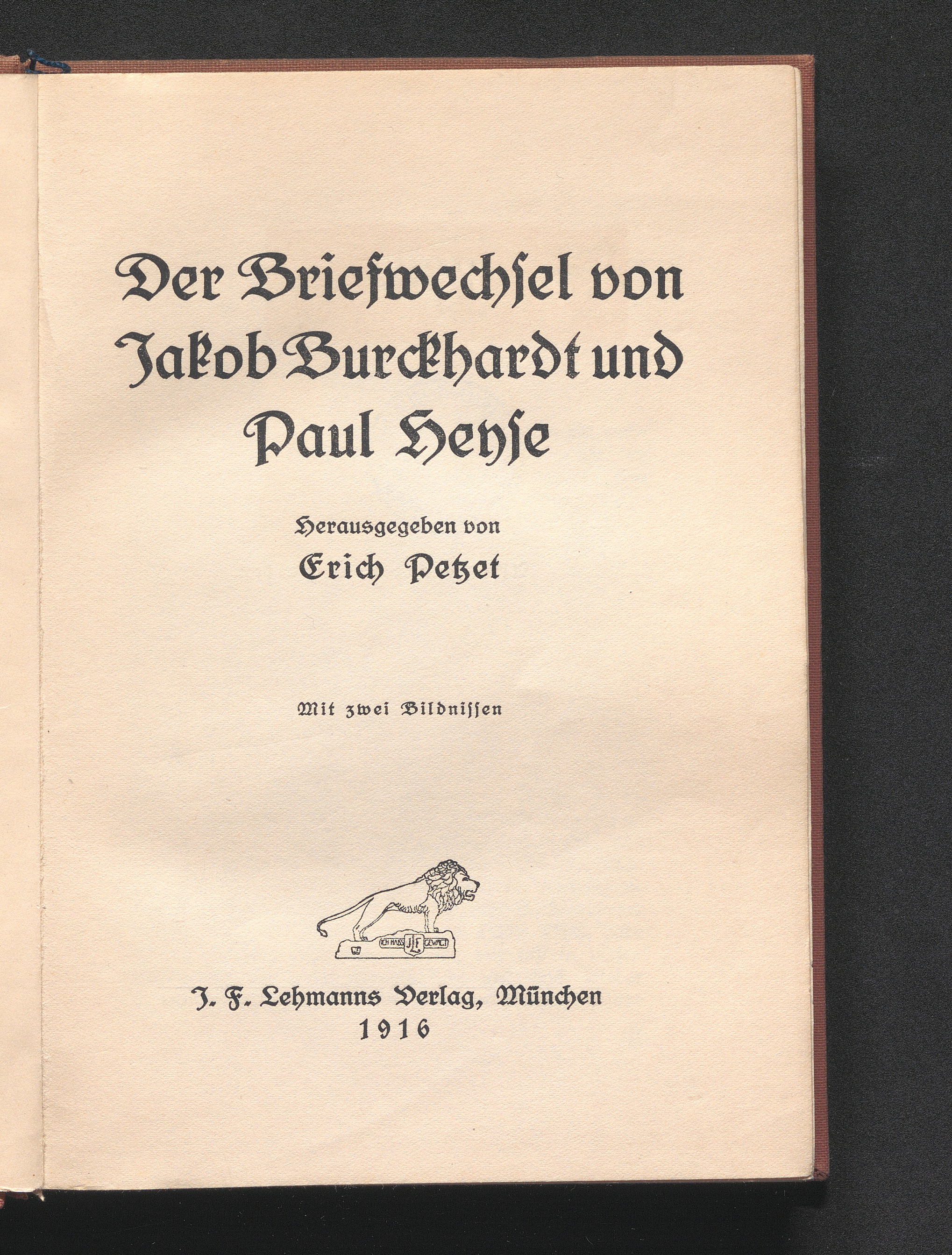 Der Briefwechsel von Jakob Burckhardt und Paul Heyse