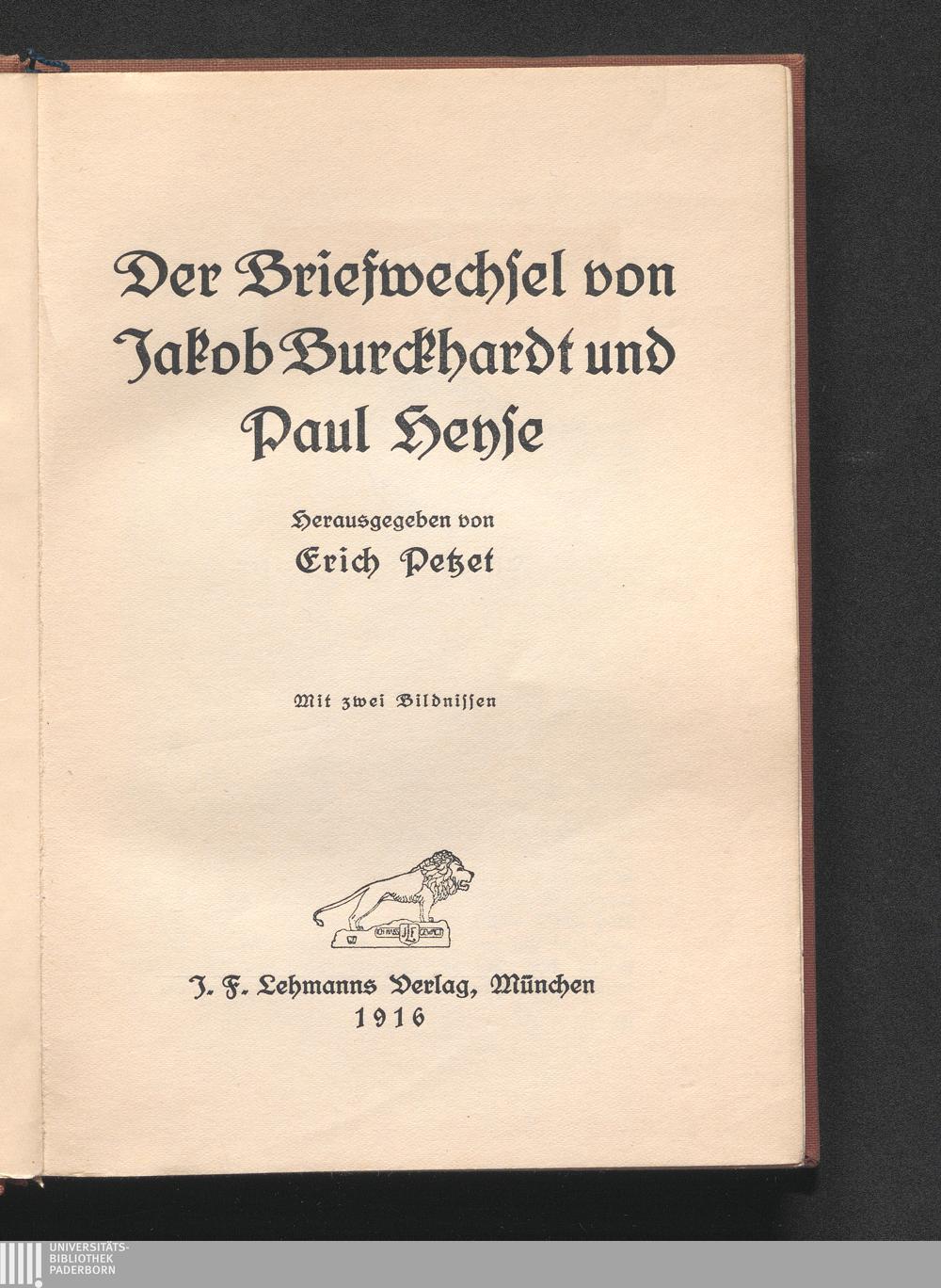 Der Briefwechsel von Jakob Burckhardt und Paul Heyse / herausgegeben von Erich Petzet