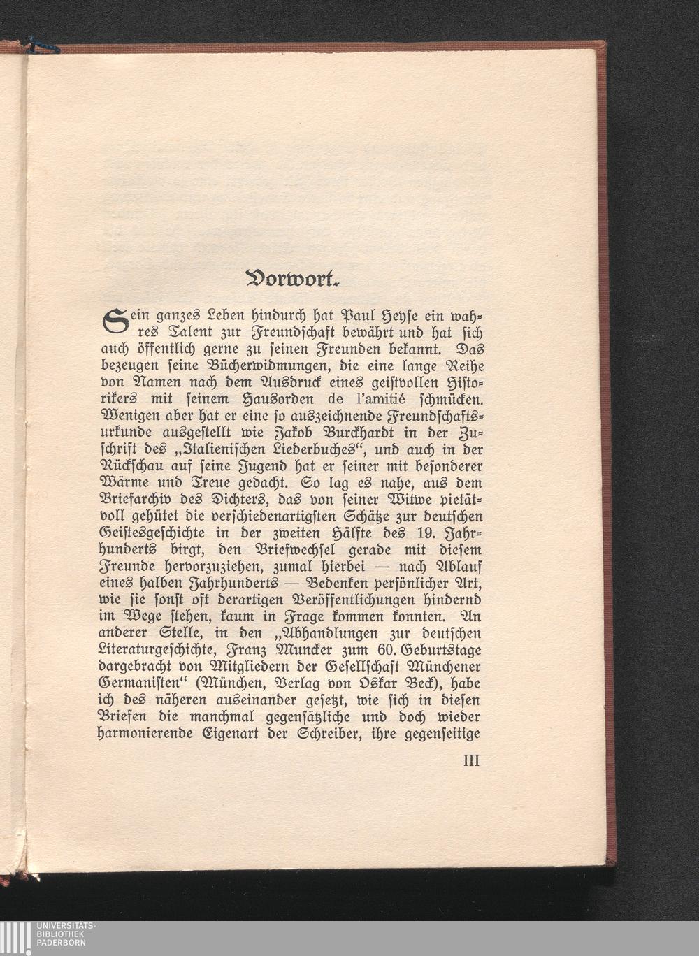 Der Briefwechsel von Jakob Burckhardt und Paul Heyse