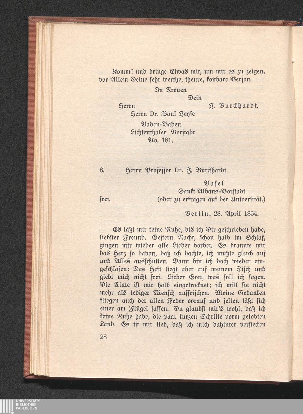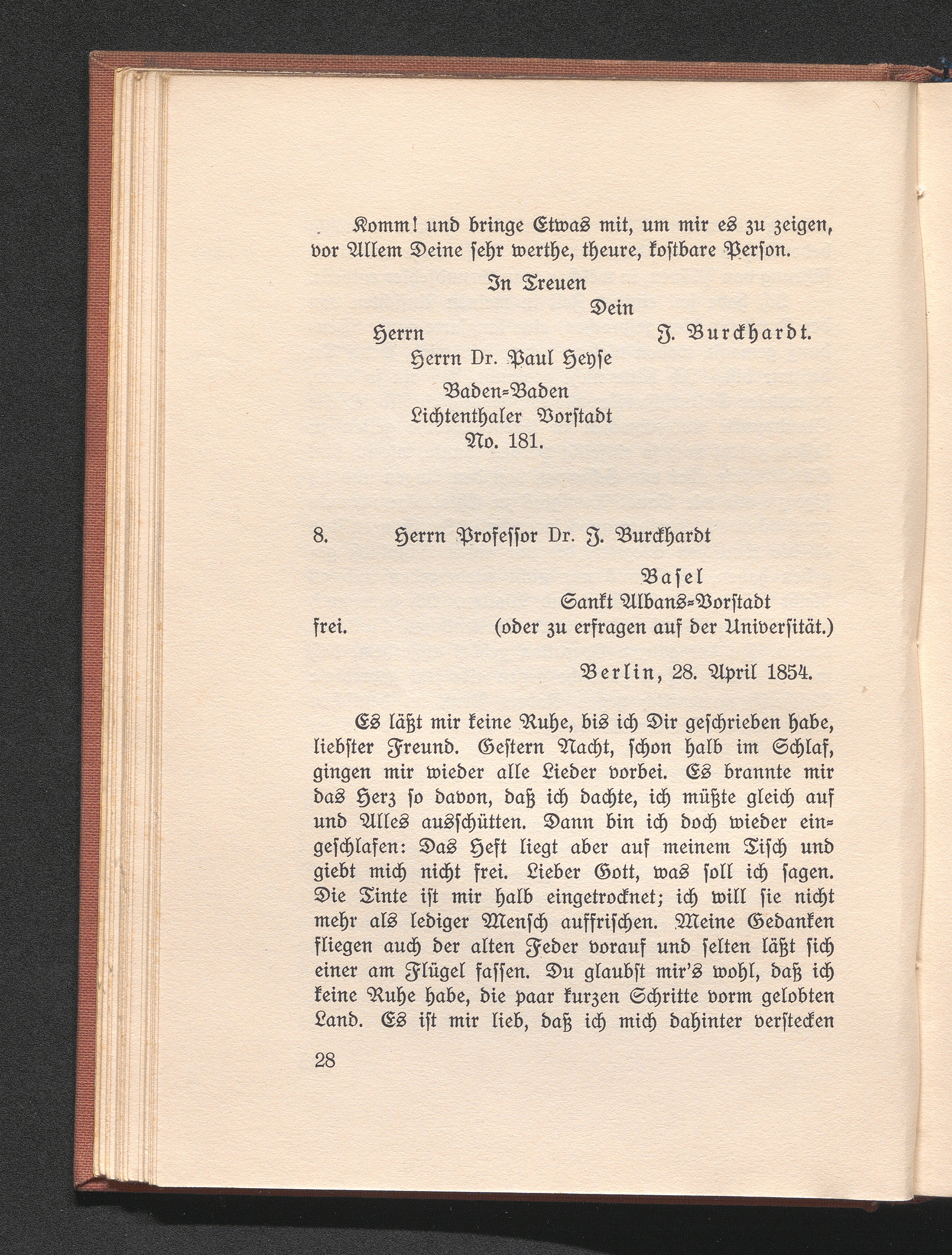 8. Heyse an Burckhardt. Berlin 28. April 1854