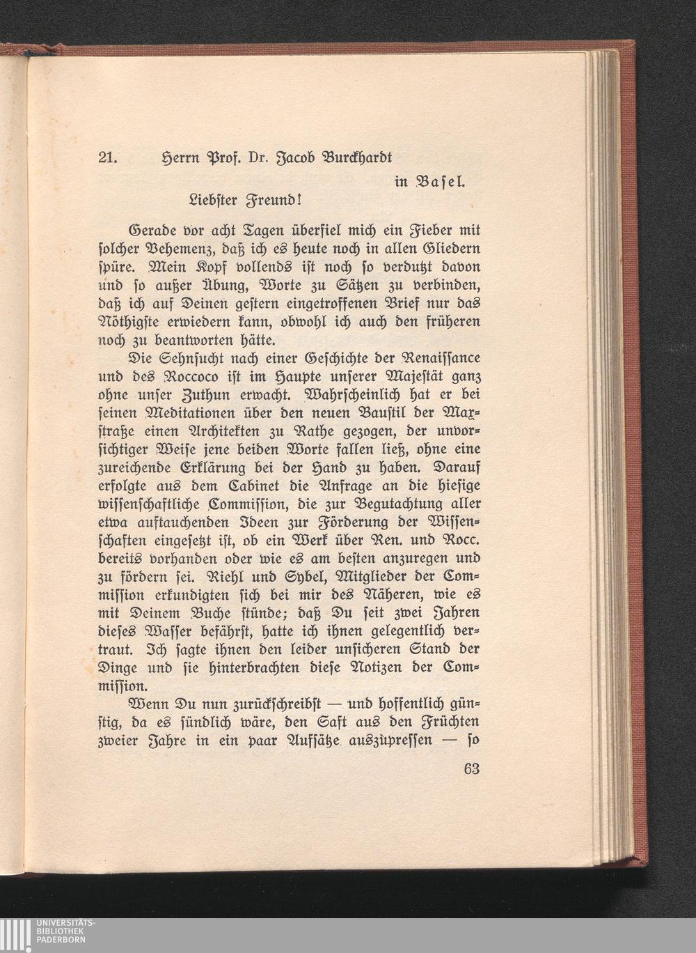 21. Heyse an Burckhardt. München 27. Mai 1858