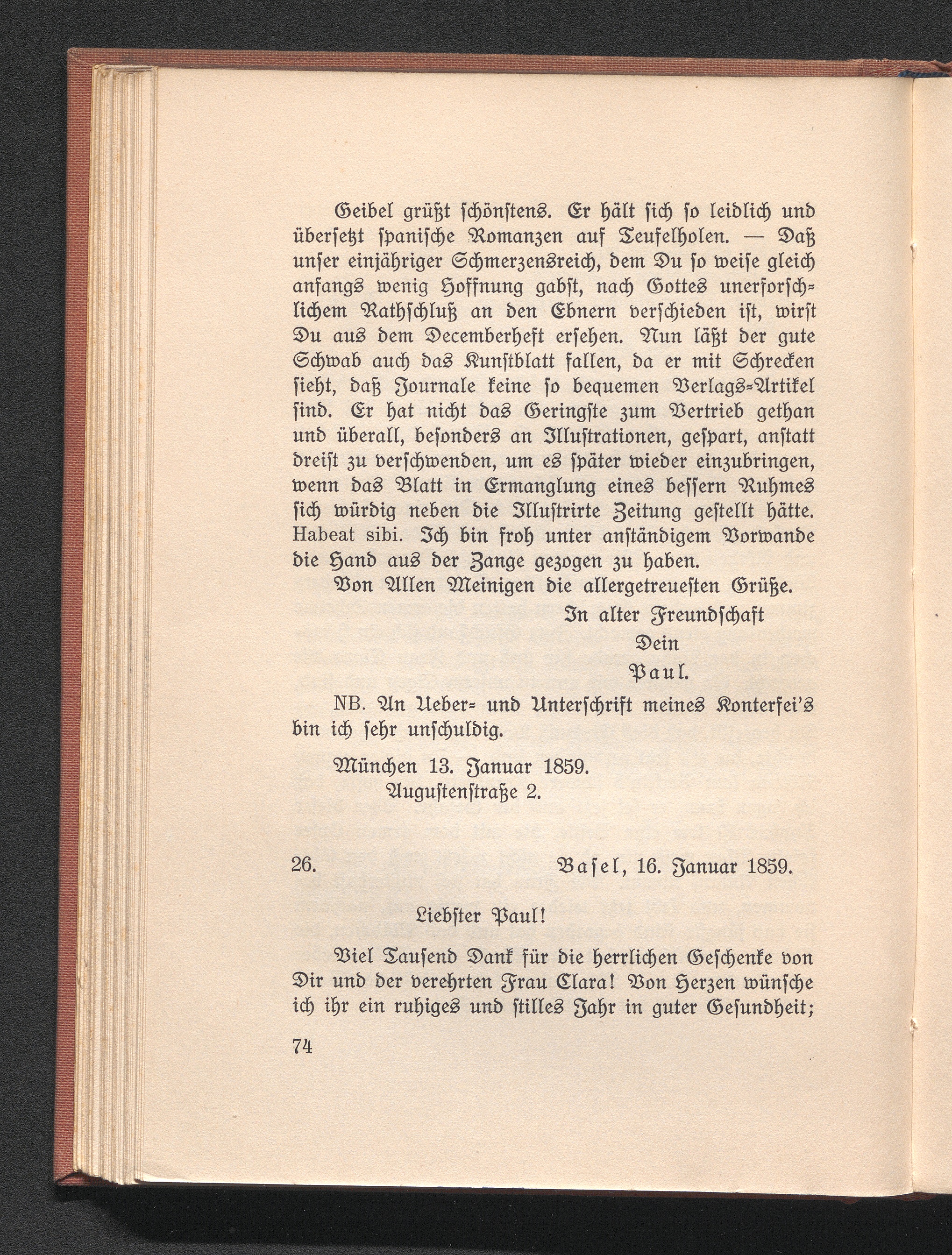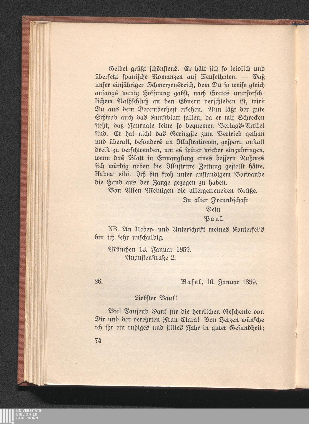 26. Burckhardt an Heyse. Basel 16. Januar 1859