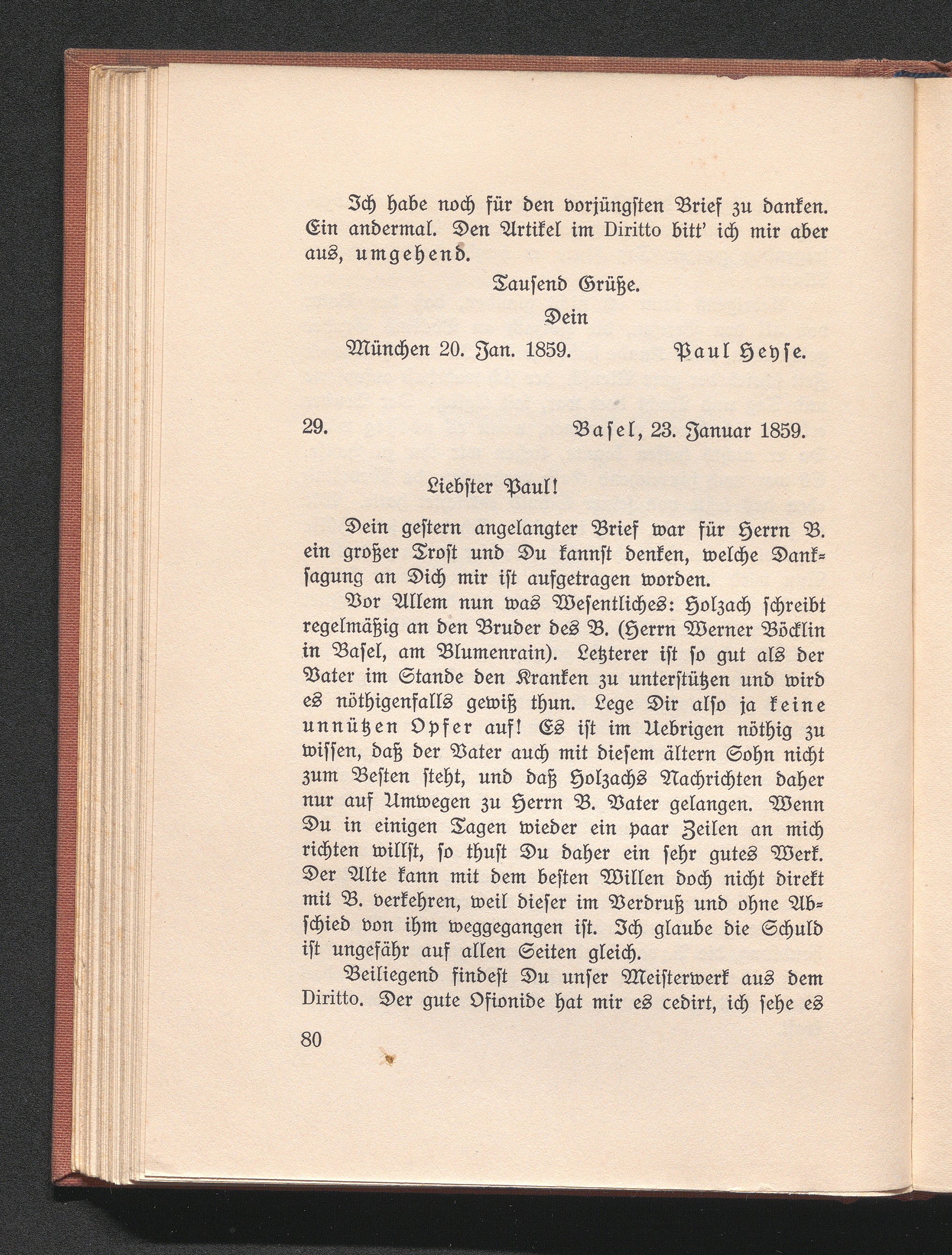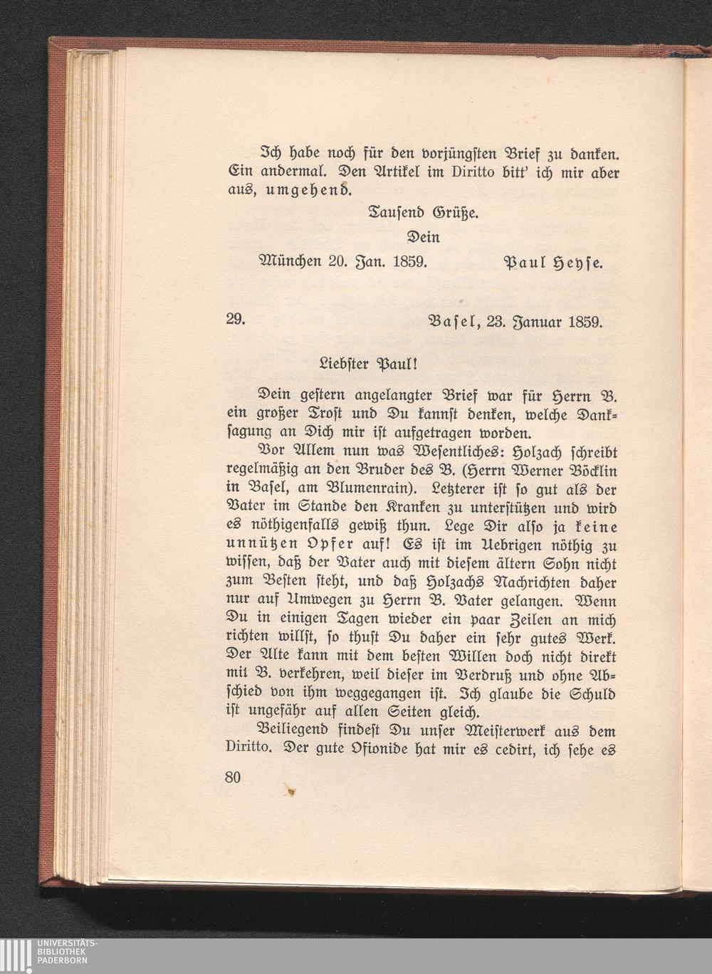 29. Burckhardt an Heyse. Basel 23. Januar 1859