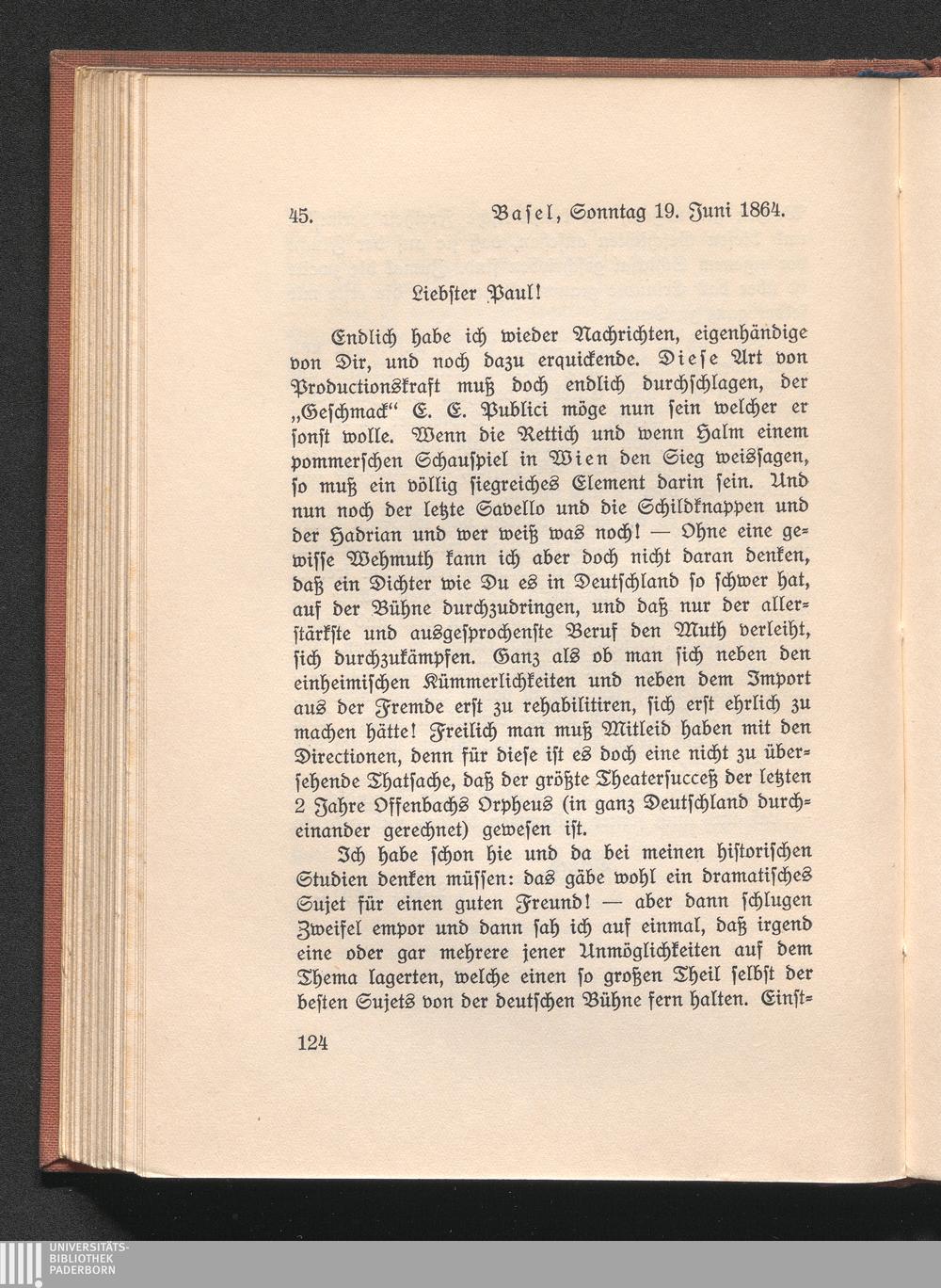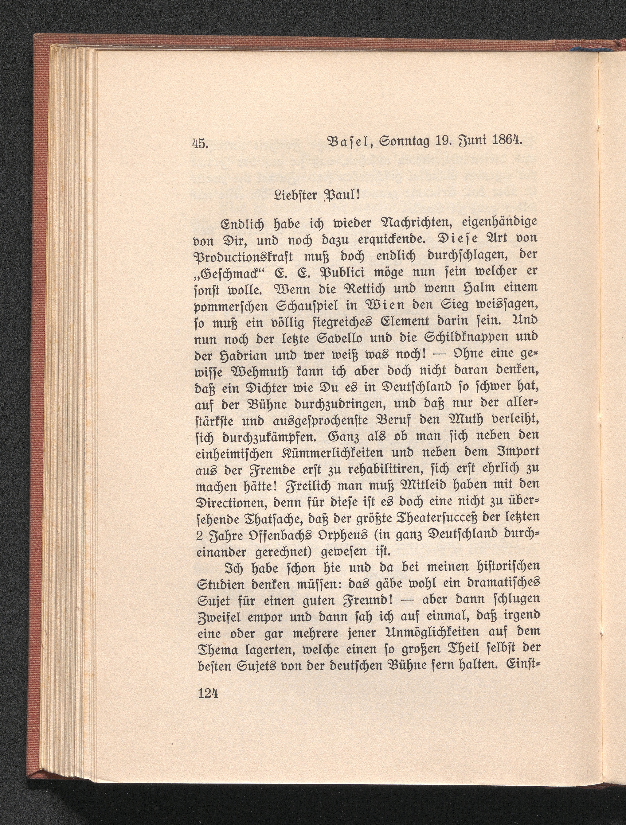 45. Burckhardt an Heyse. Basel 19. Juni 1864