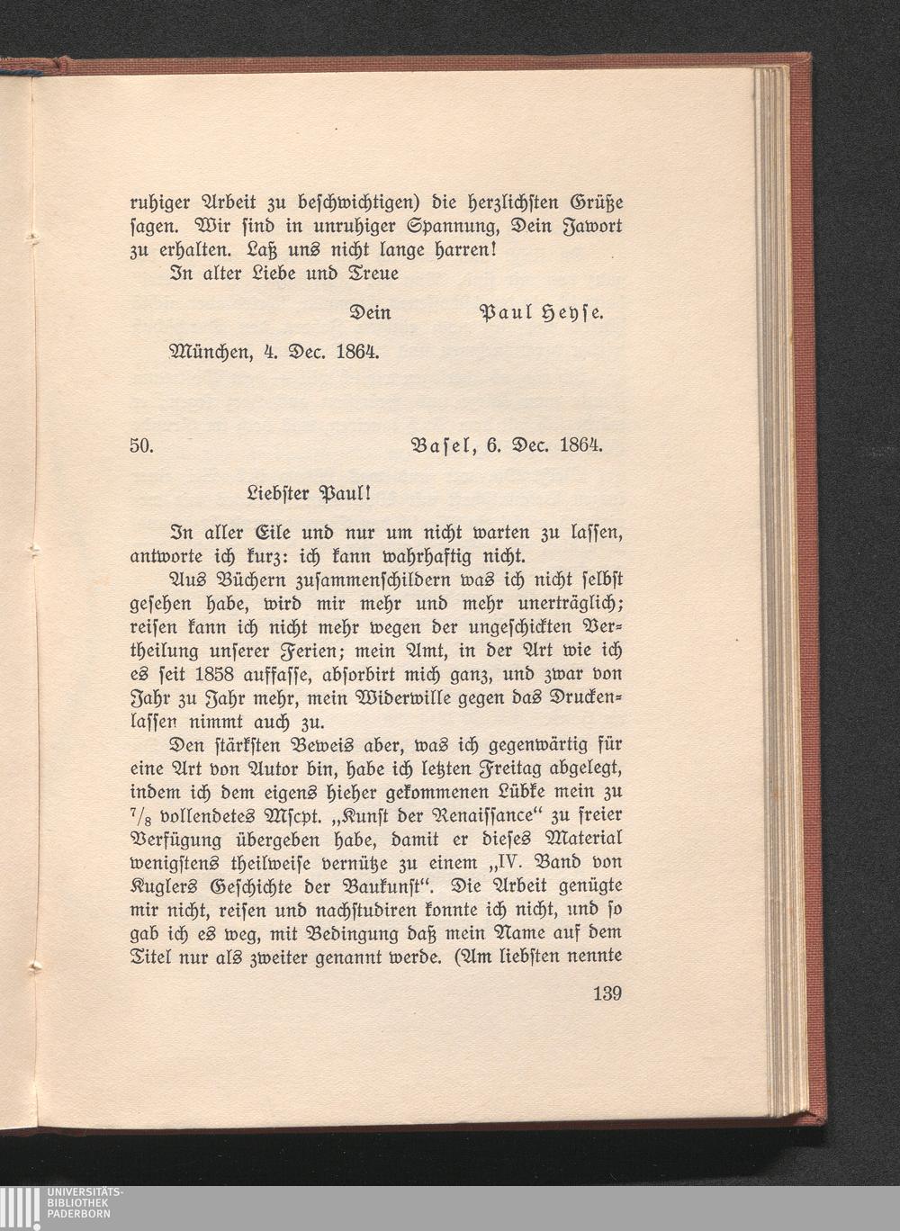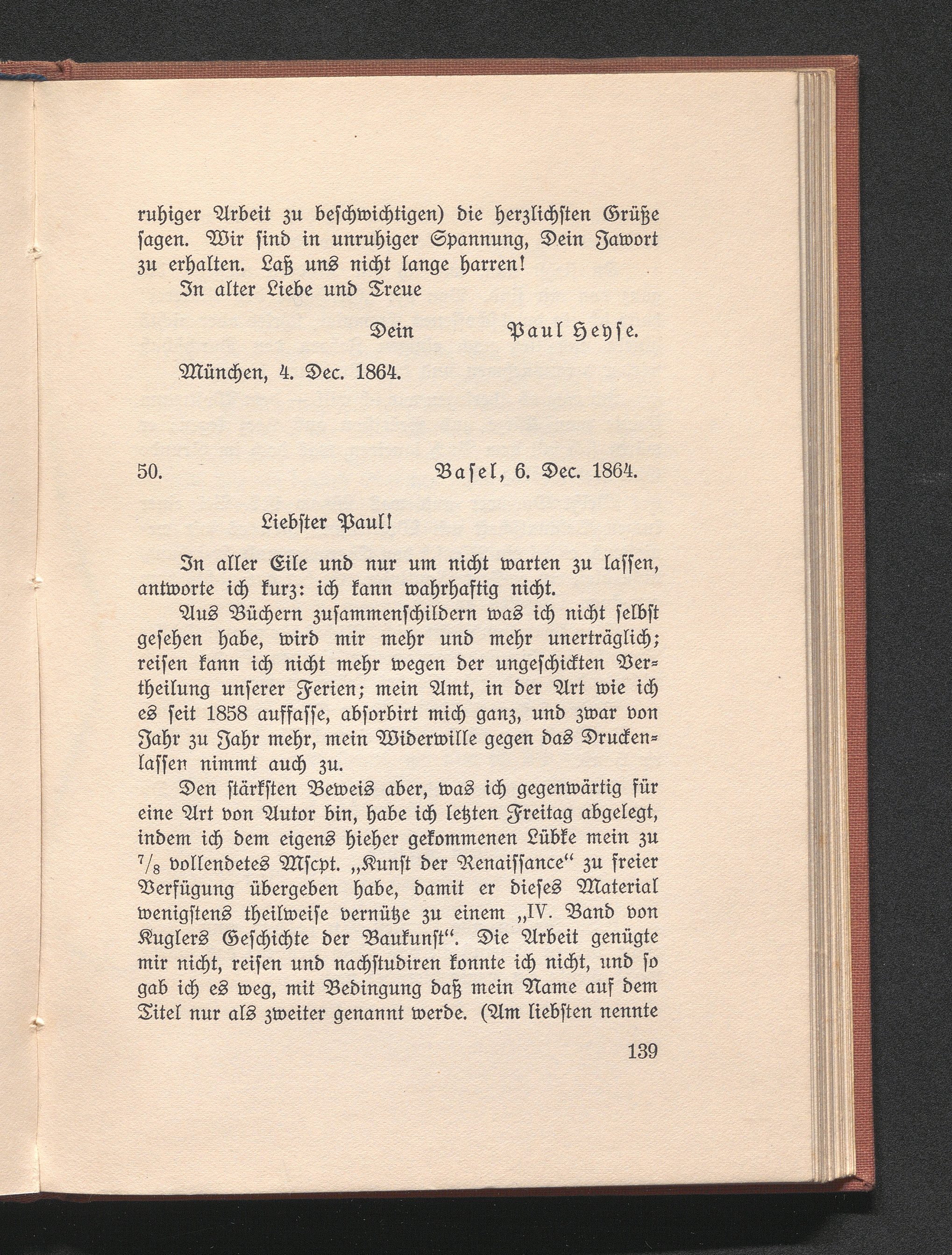 50. Burckhardt an Heyse. Basel 6. Dezember 1864
