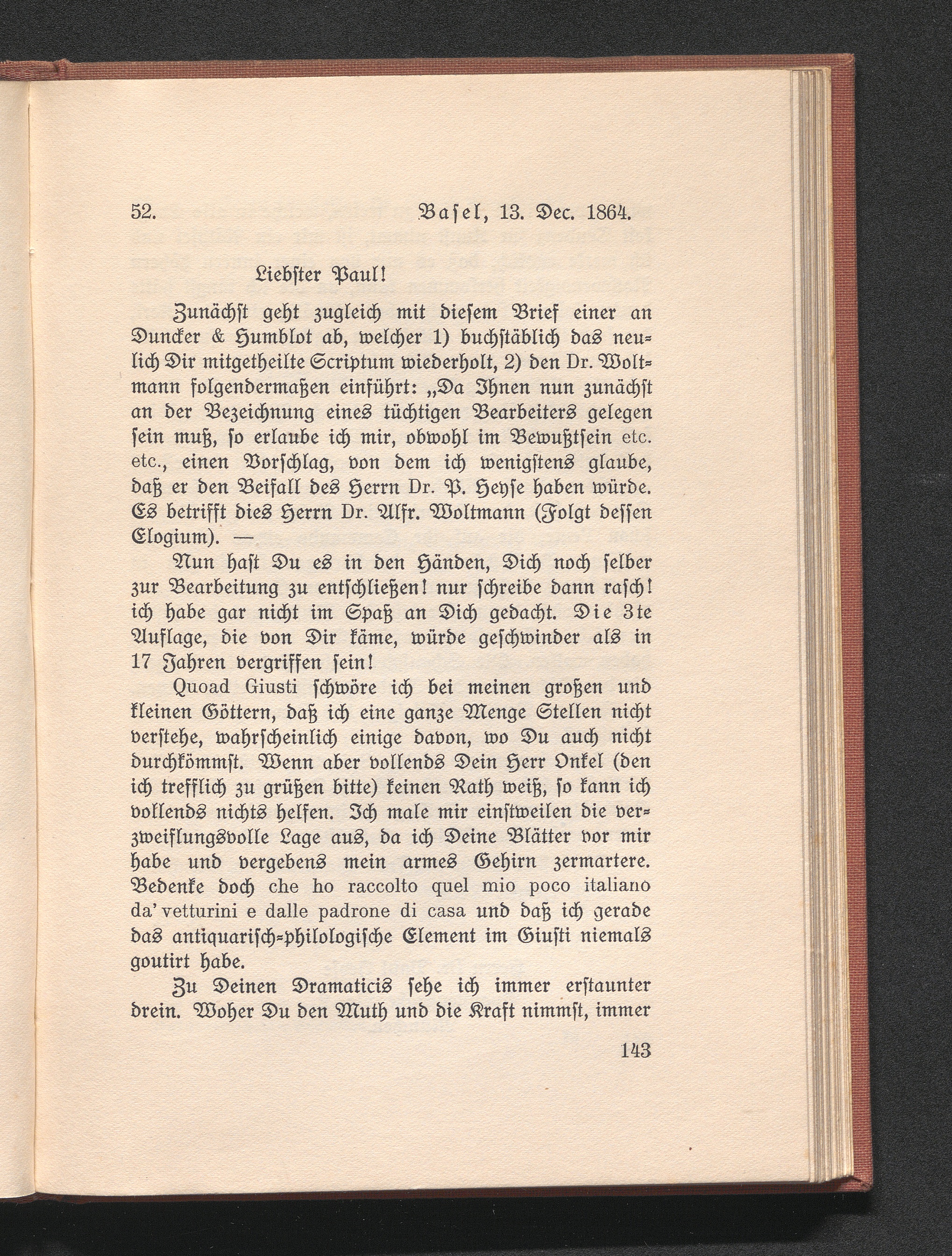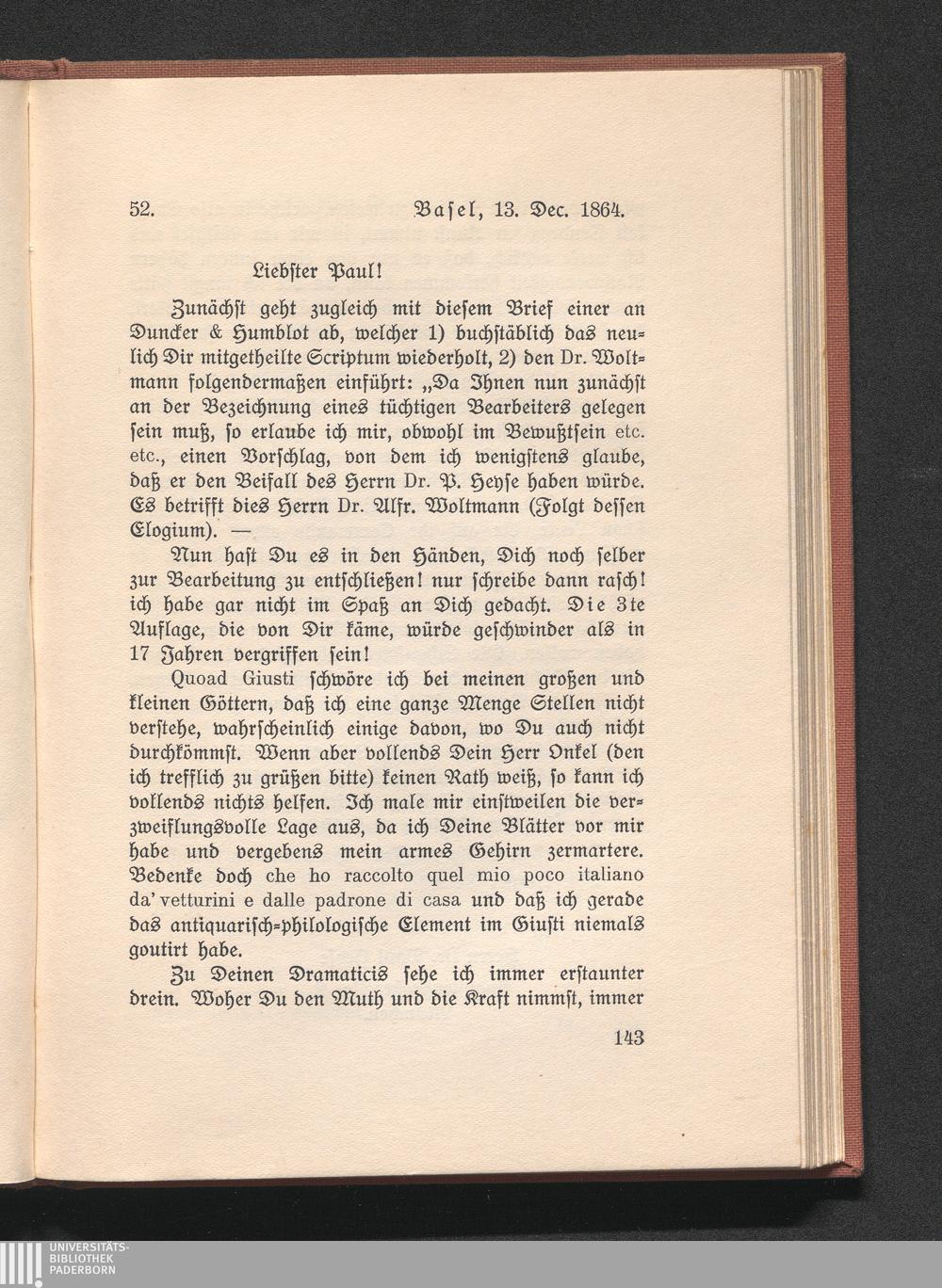 52. Burckhardt an Heyse. Basel 13. Dezember 1864