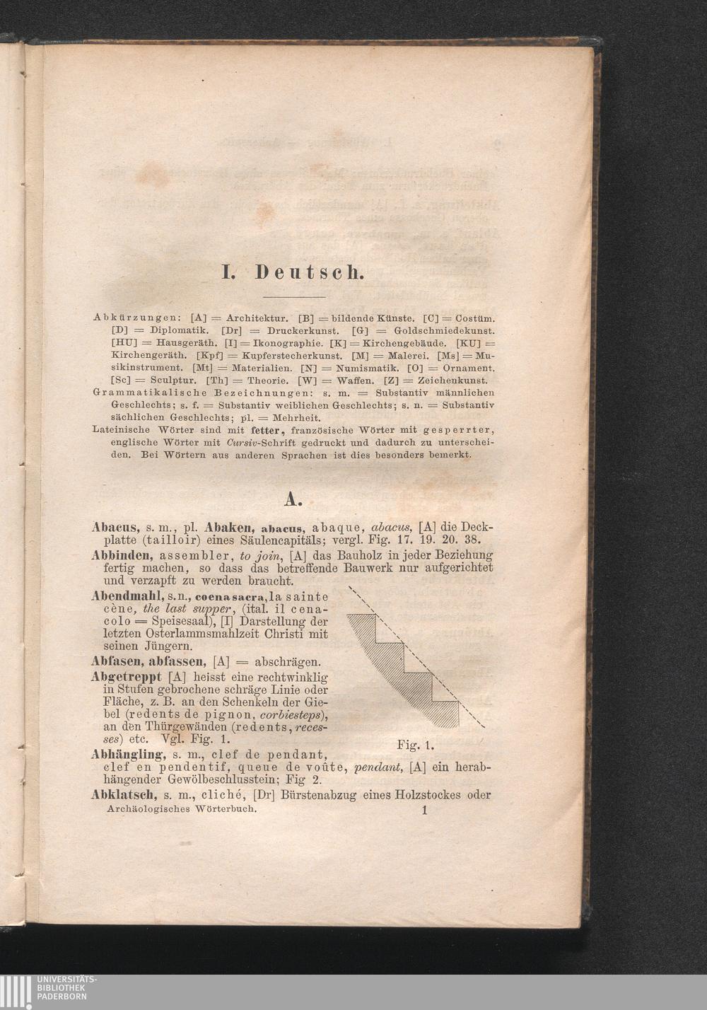 Archäologisches Wörterbuch zur Erklärung der in den Schriften über christliche Kunstalterthümer vorkommenden Kunstausdrücke : Deutsch, Lateinisch, Französisch und Englisch / von Heinrich Otte