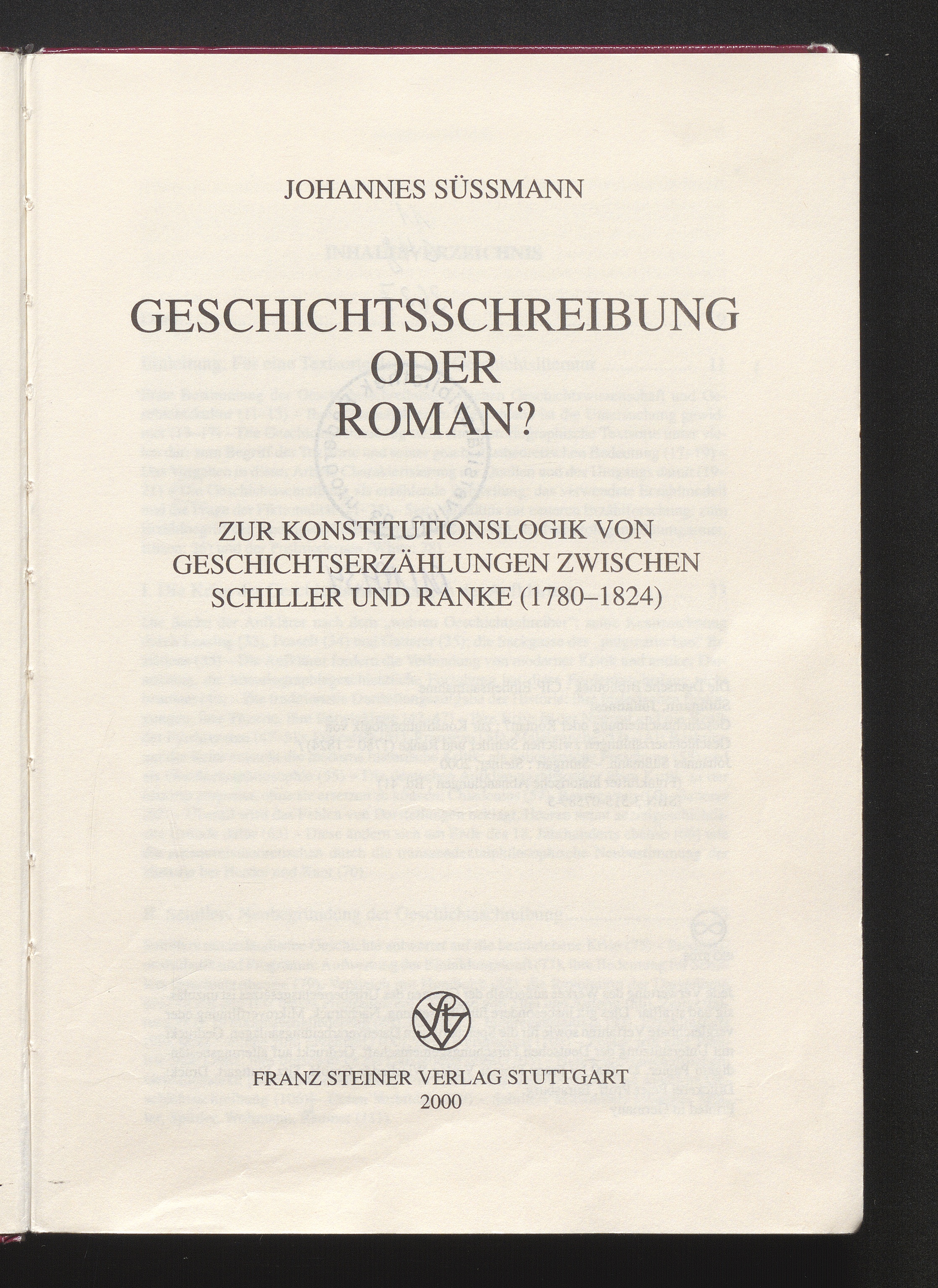 Geschichtsschreibung oder Roman? : Zur Konstitutionslogik von Geschichtserzählungen zwischen Schiller und Ranke (1780 - 1824) / Johannes Süssmann