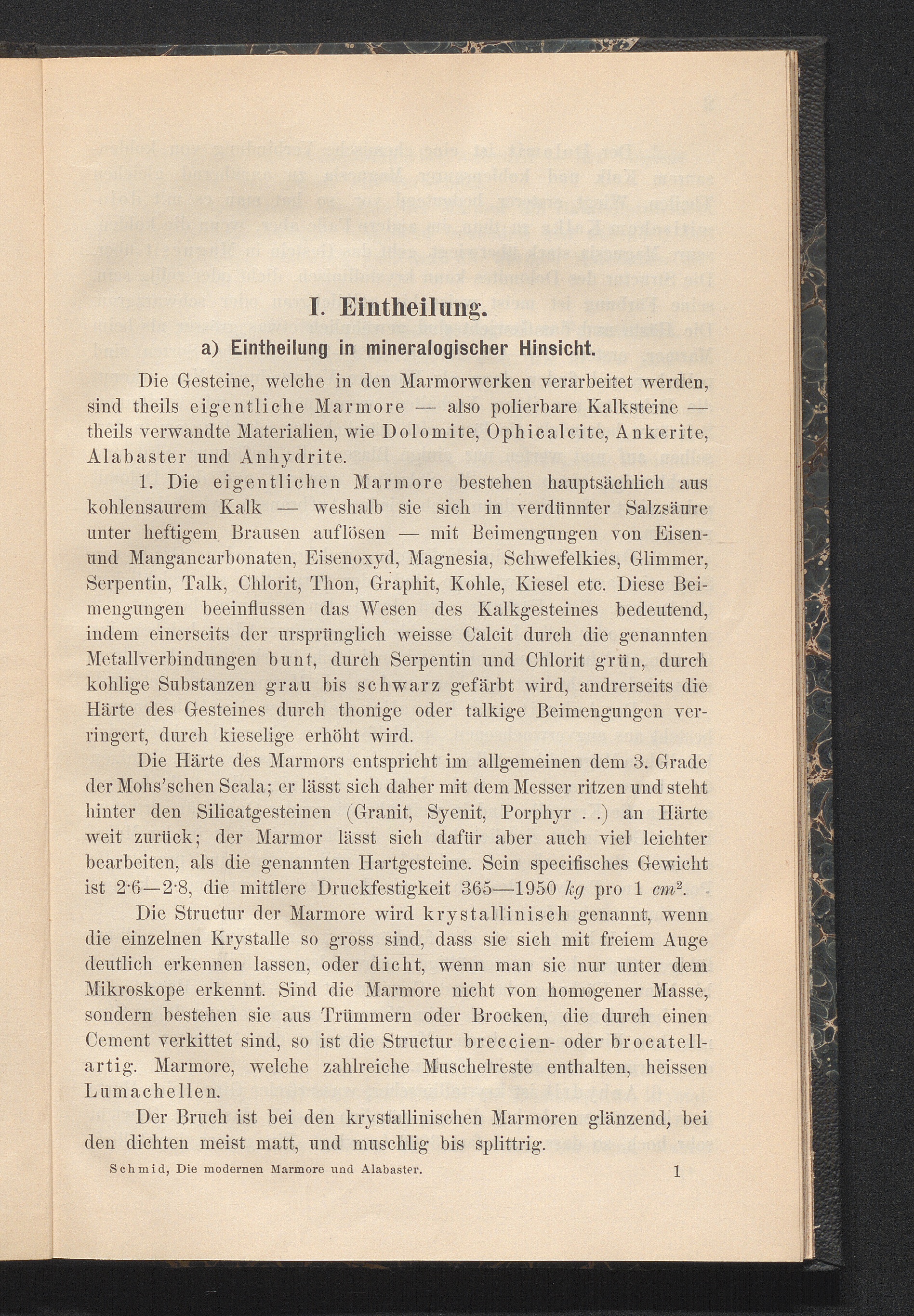 Die modernen Marmore und Alabaster : deren Eintheilung, Entstehung, Eigenschaften und Verwendung nebst einer Übersicht der wichtigsten Marmorsorten / von Heinrich Schmid