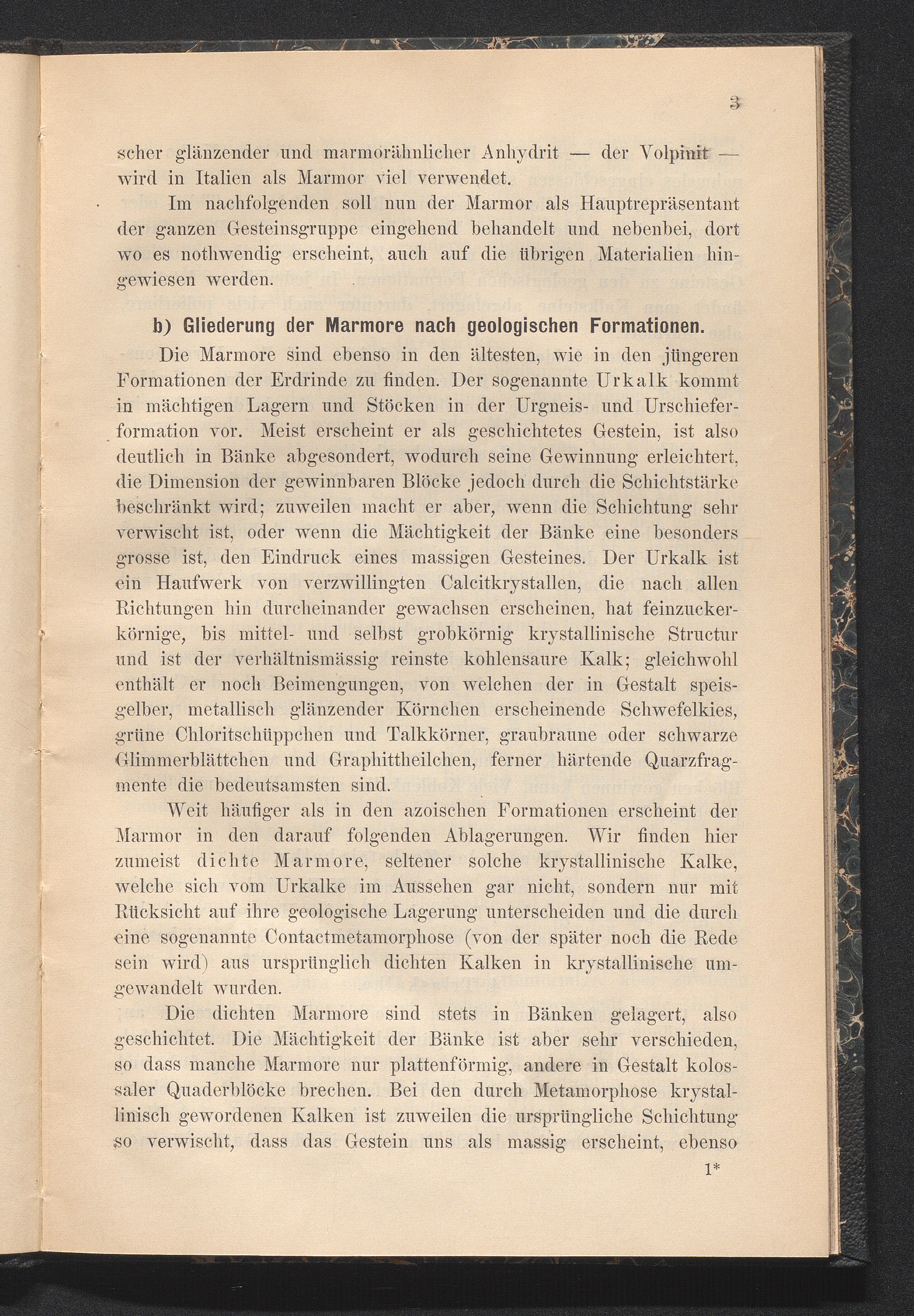 b) Gliederung der Marmore nach geologischen Formationen.