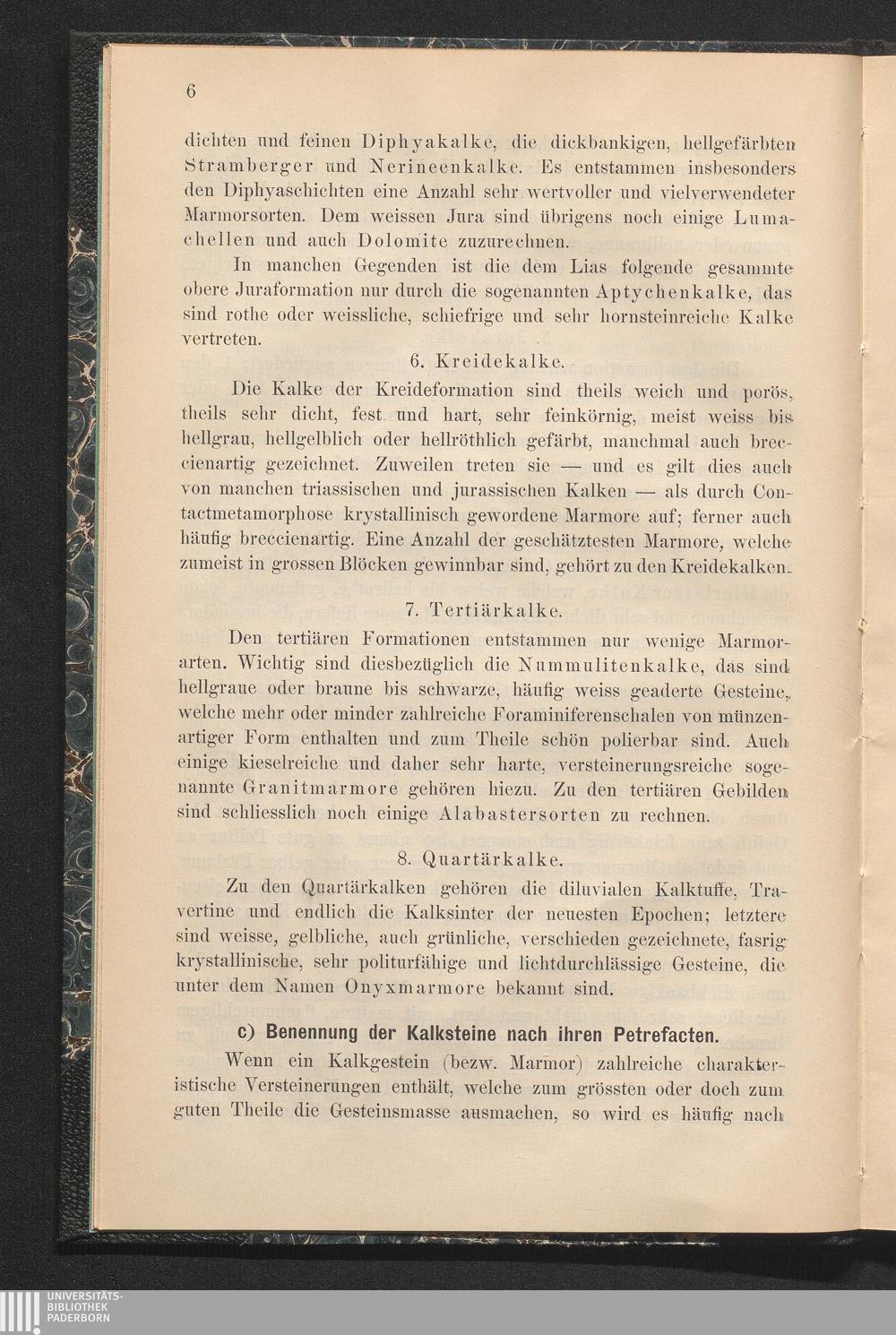 c) Benennung der Kalksteine nach ihren Petrefacten.