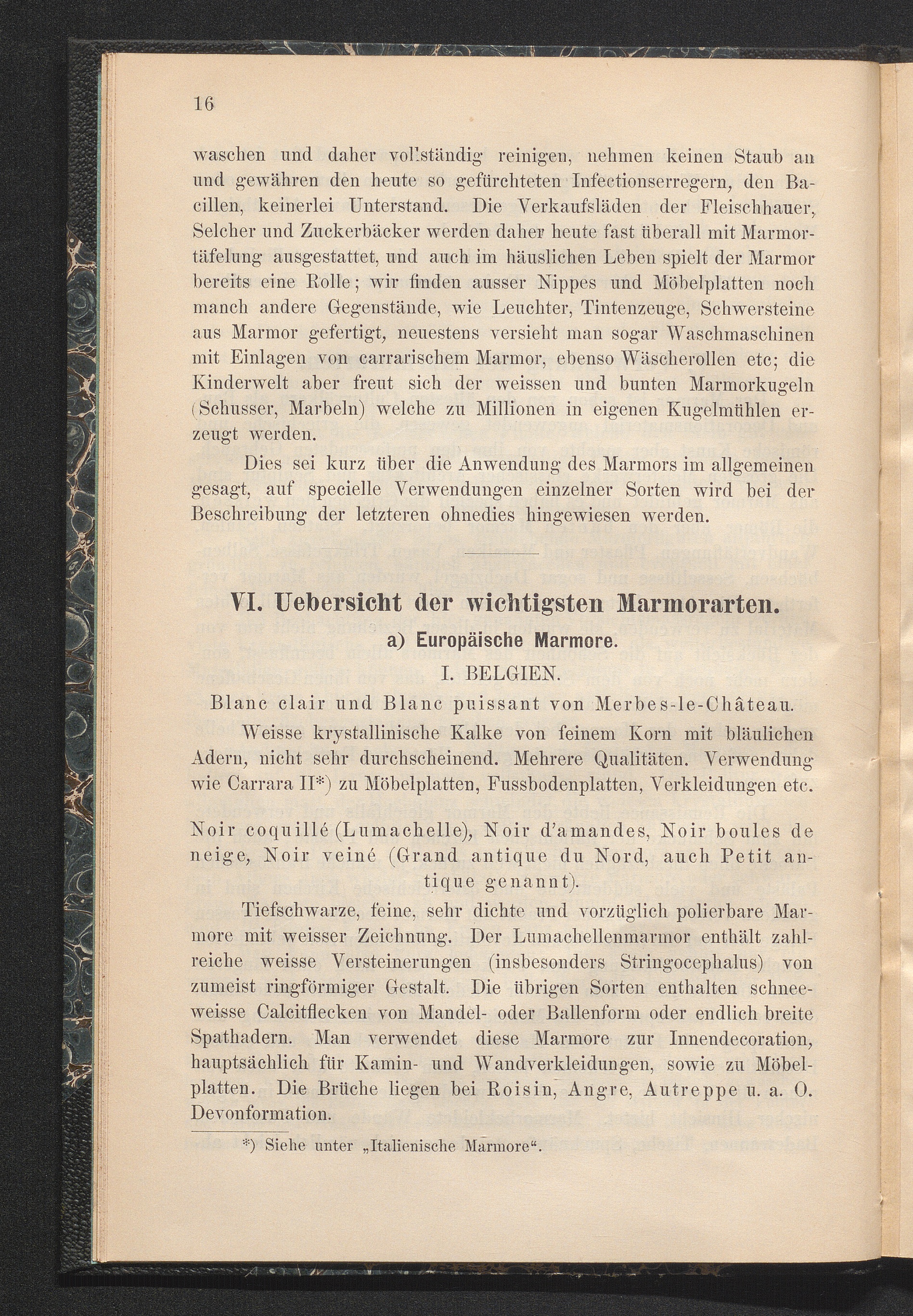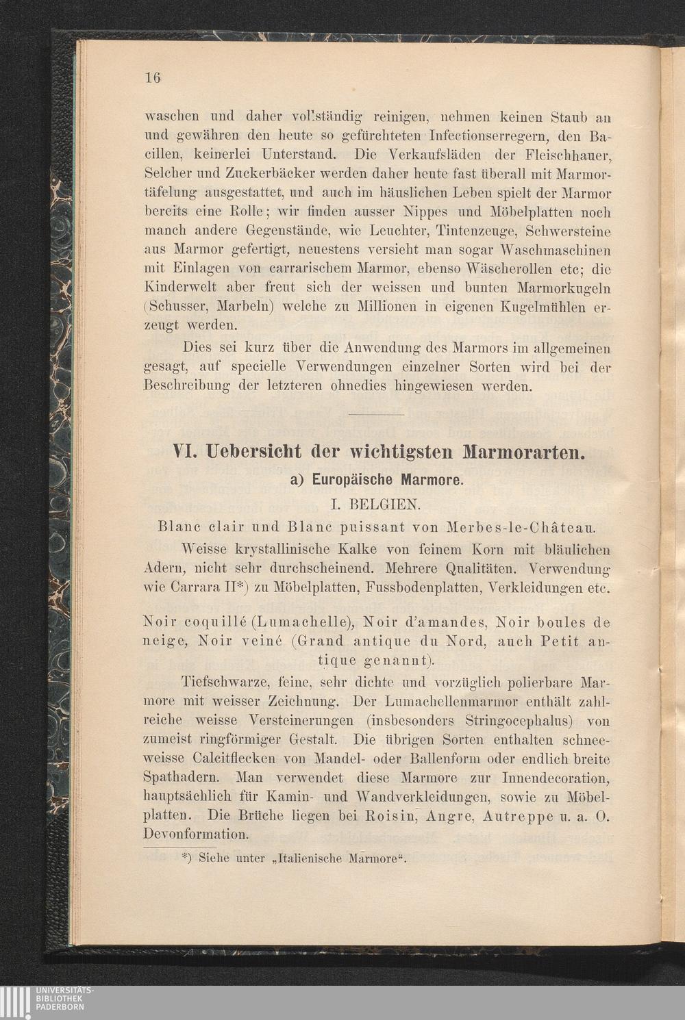 VI. Uebersicht der wichtigsten Marmorarten.
