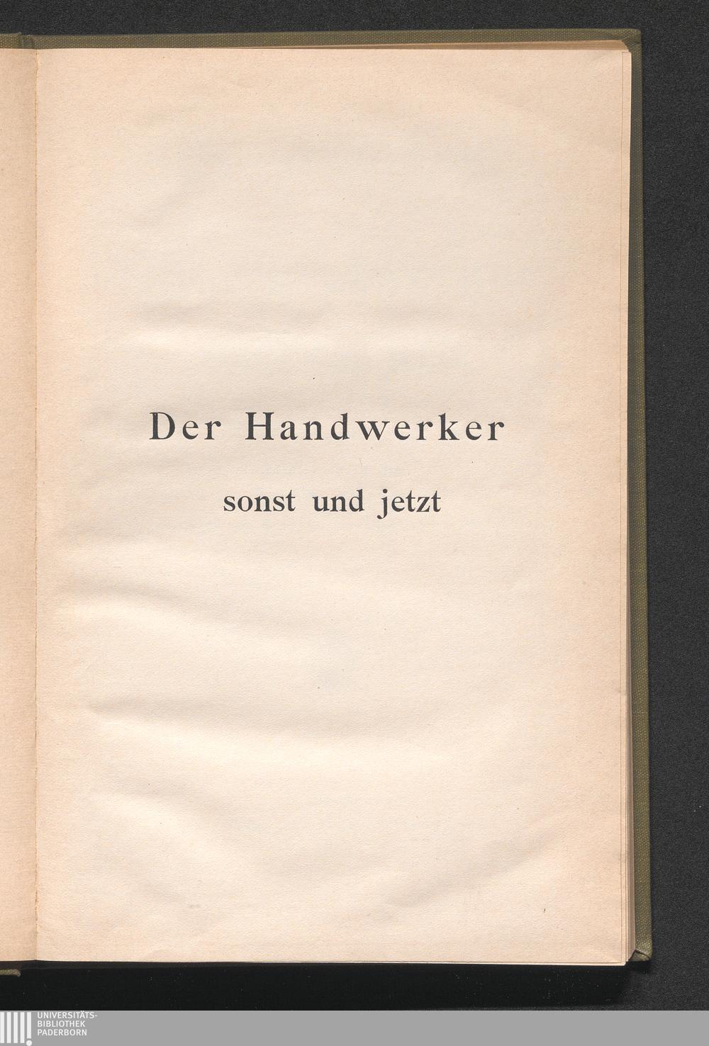 I. Der Anfang des Handwerks.