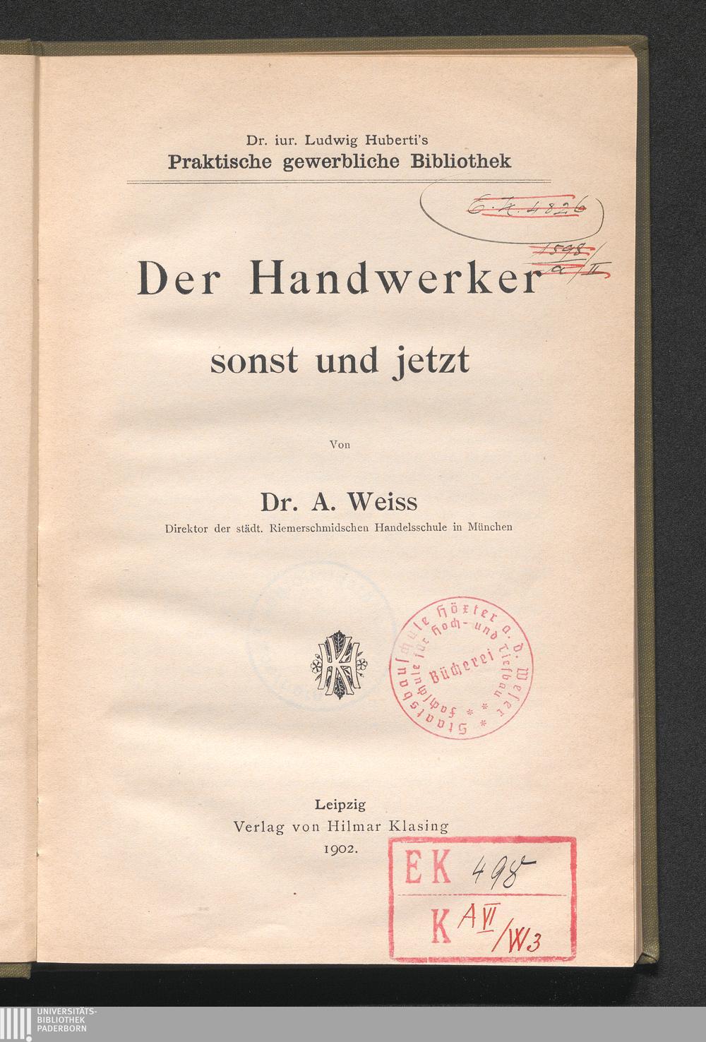 Der Handwerker sonst und jetzt / von A. Weiss