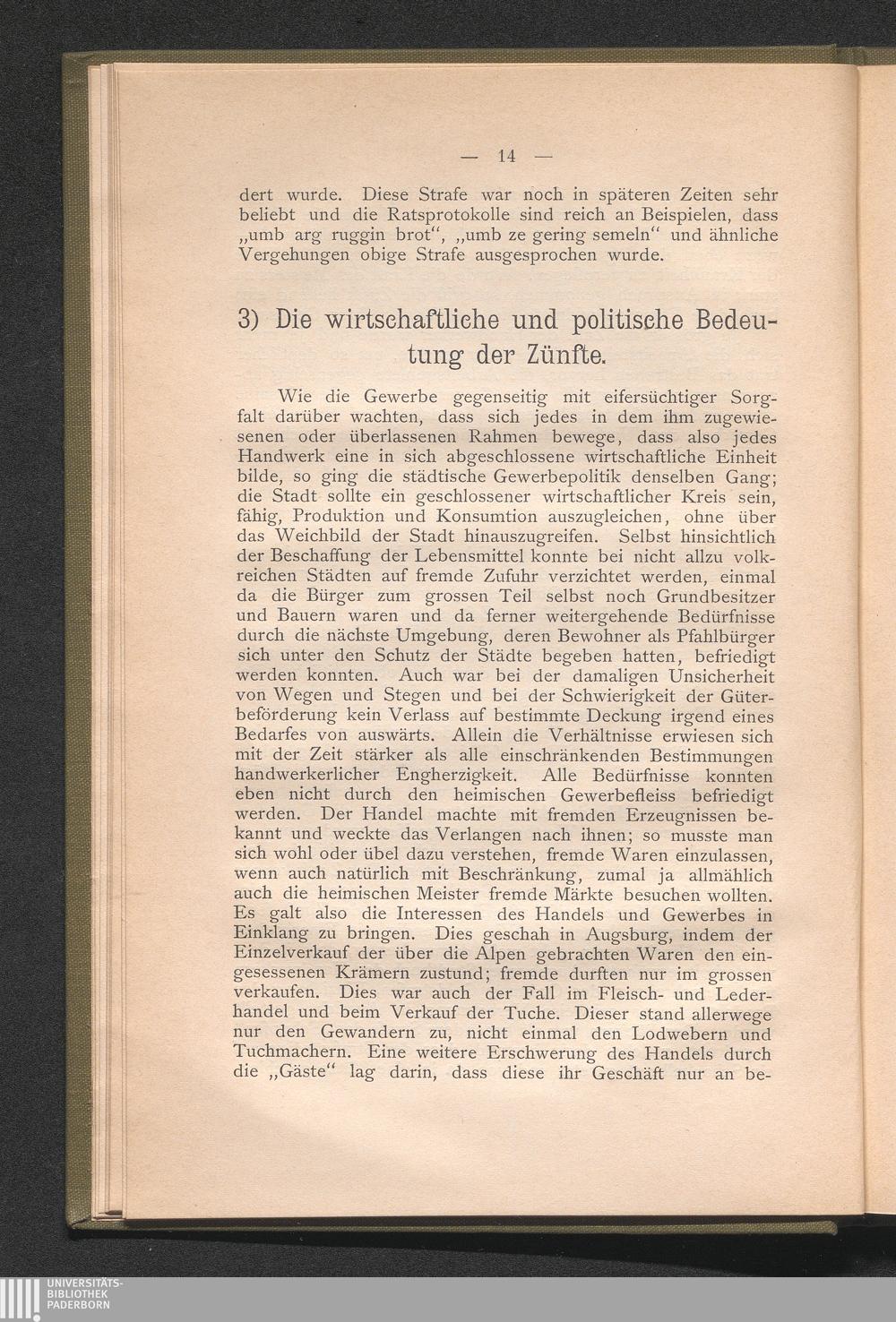 3) Die wirtschaftliche und politische Bedeutung der Zünfte.
