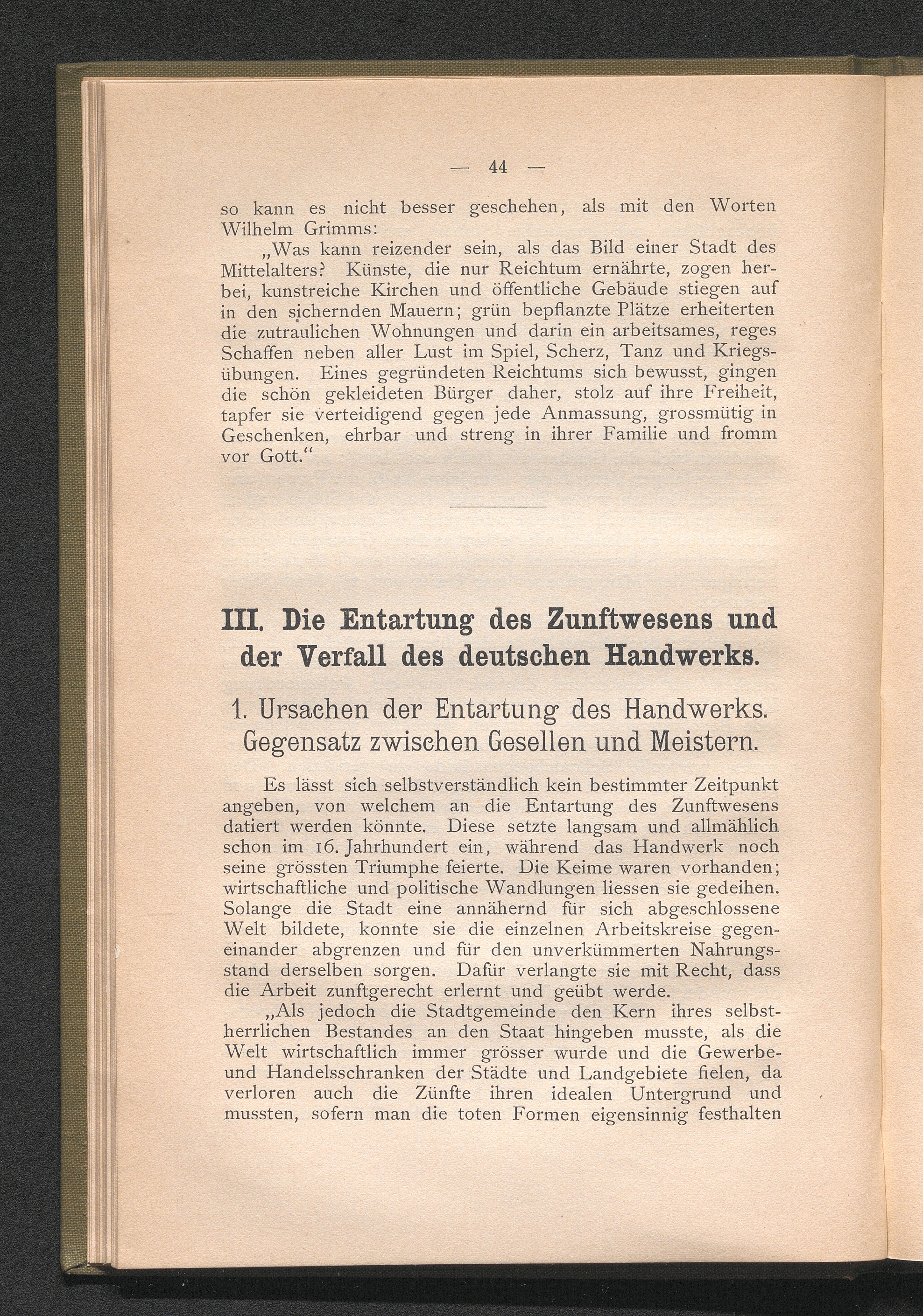 III. Die Entartung des Zunftwesens und der Verfall des deutschen Handwerks.