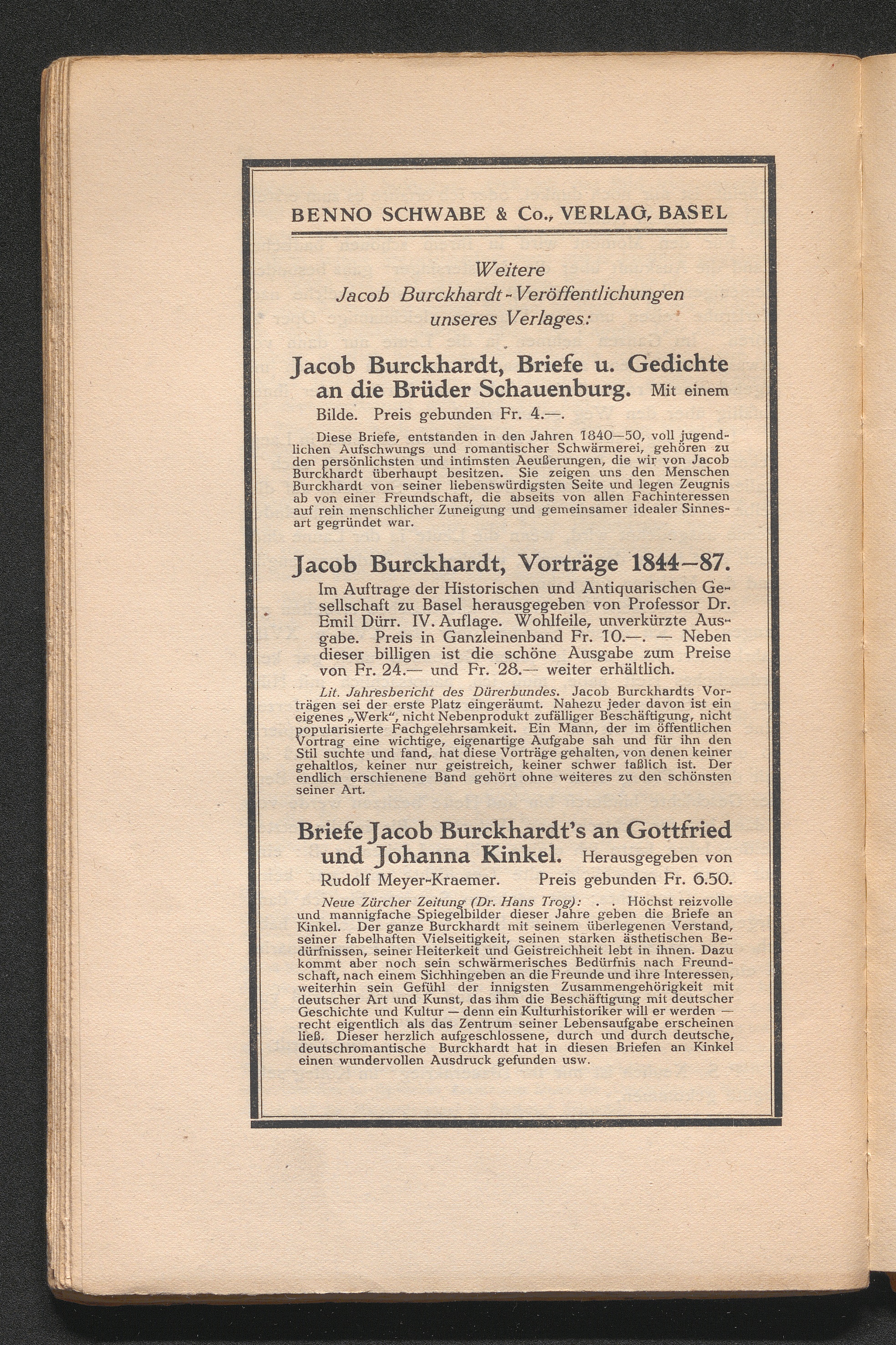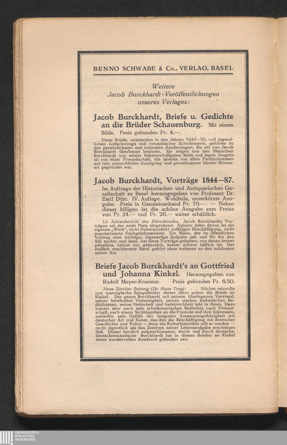 Briefwechsel Jacob Burckhardt's mit dem Freiburger Historiker Heinrich Schreiber