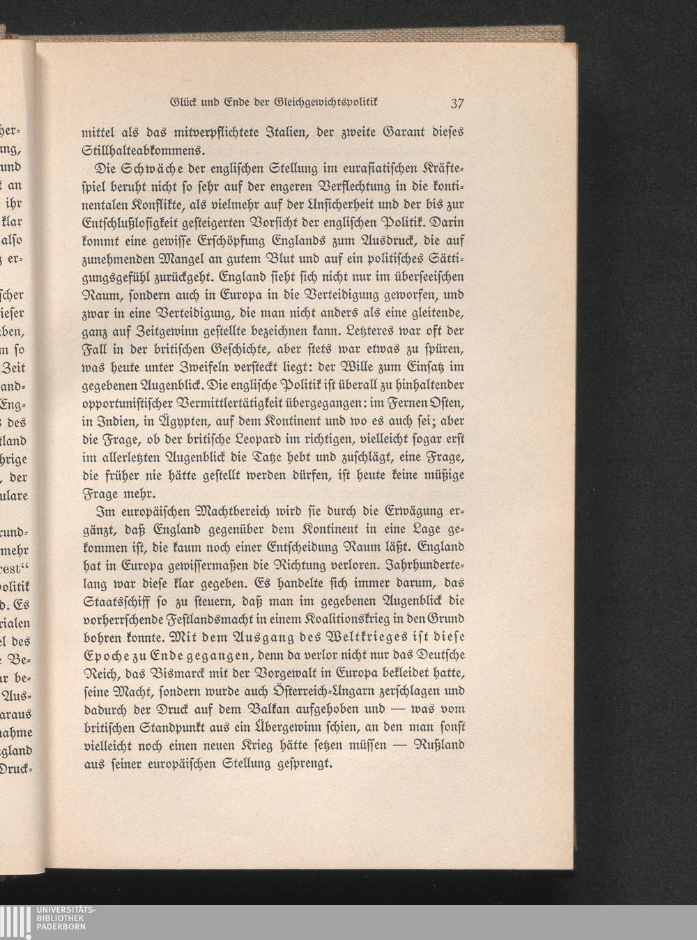 Glück und Ende der Gleichgewichtspolitik