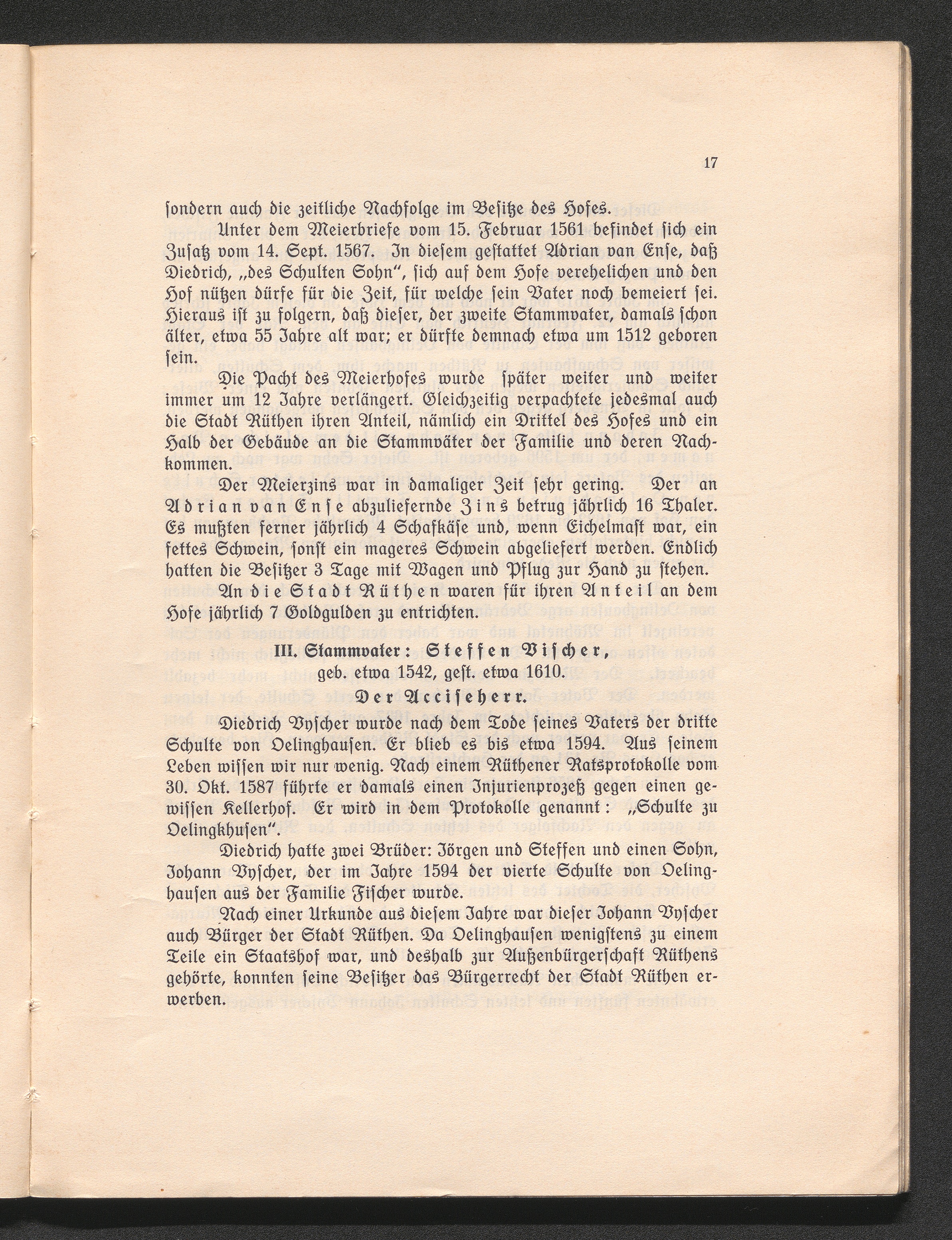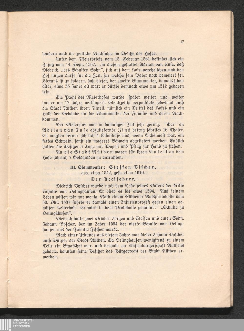 III. Stammvater: Steffen Vischer, geb. etwa 1542, gest. etwa 1610. Der Acciseher[...]