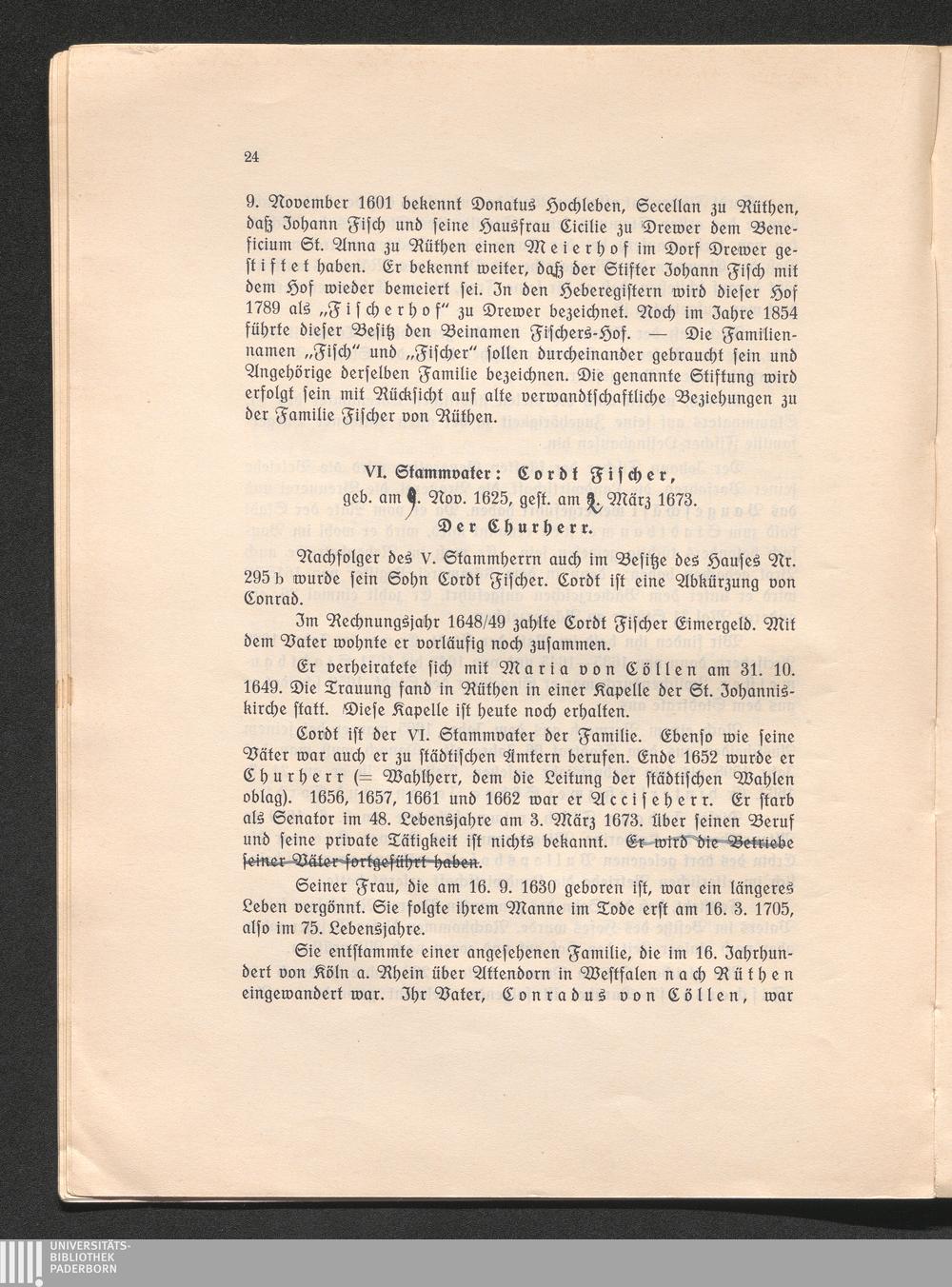 VI. Stammvater: Cordt Fischer, geb. am 6. Nov. 1625, gest. am 3. März 1673. Der [...]