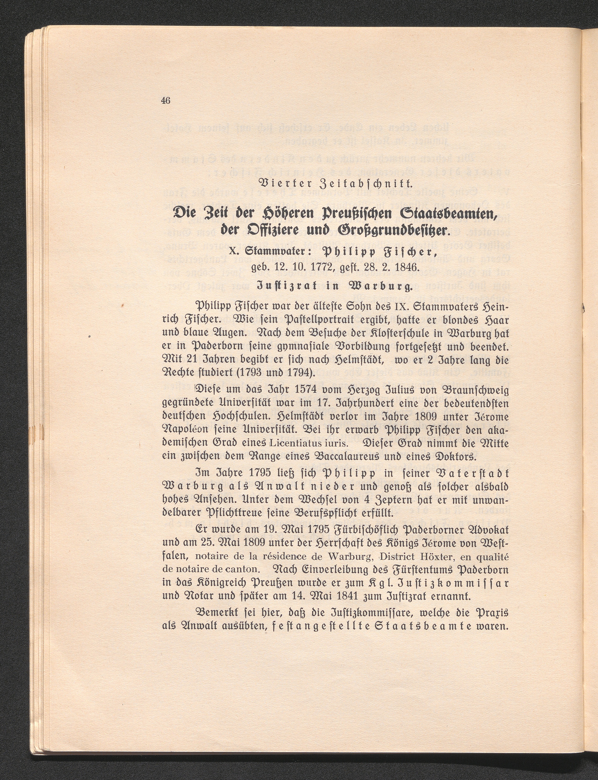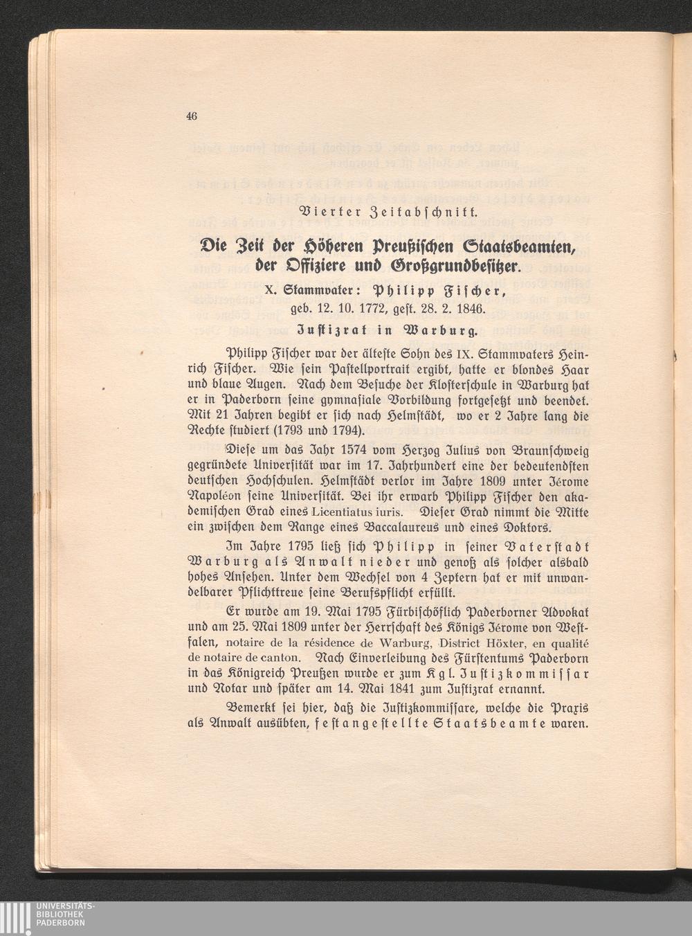 X. Stammvater: Philipp Fischer, geb. 12.10.1772, gest. 28.2.1846. Justizrat in W[...]