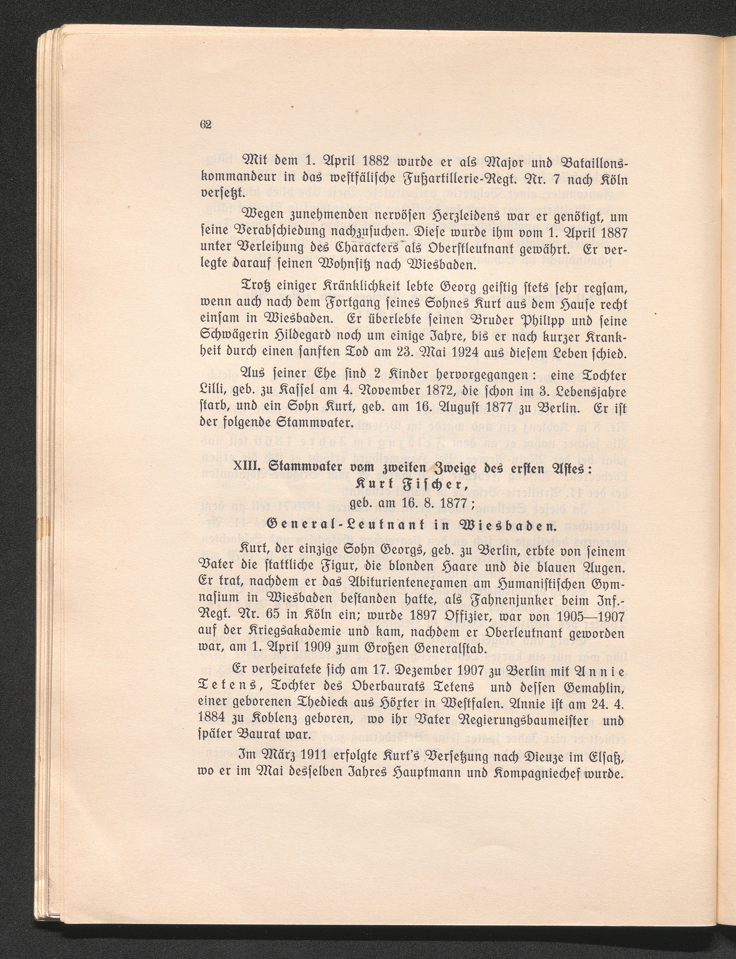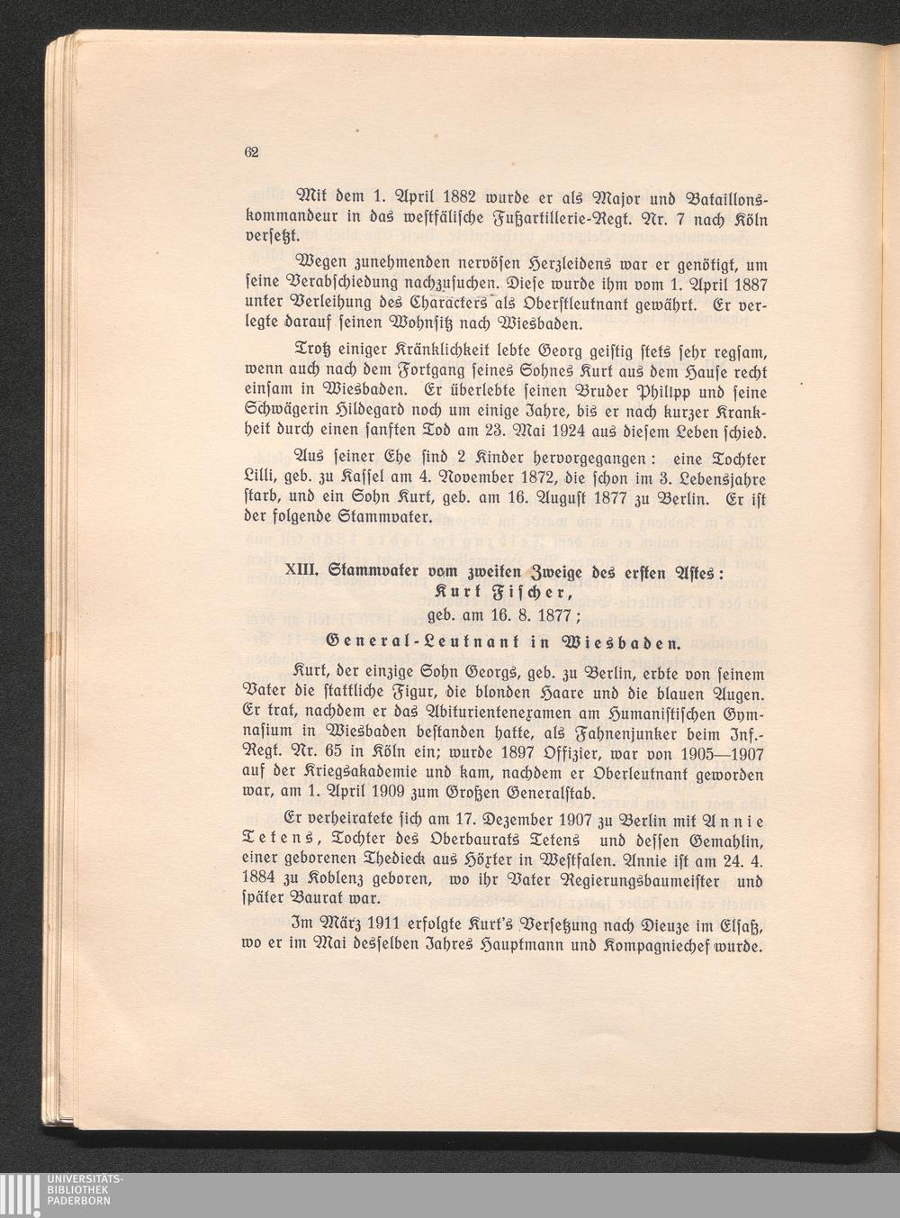 XIII. Stammvater von zweiten Zweige des ersten Astes: Kurt Fischer, geb. am 16.8.1877;[...]