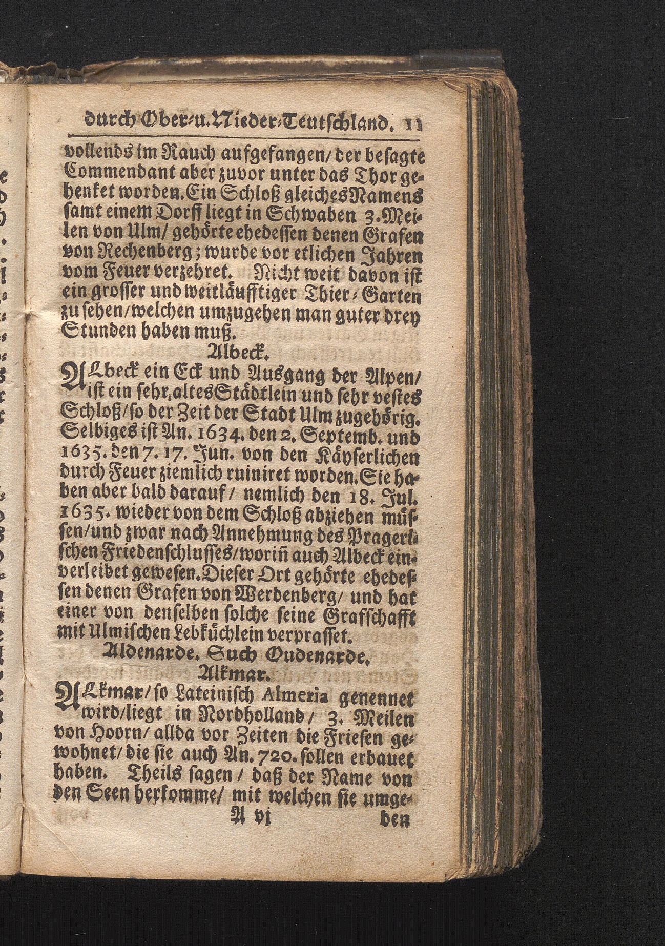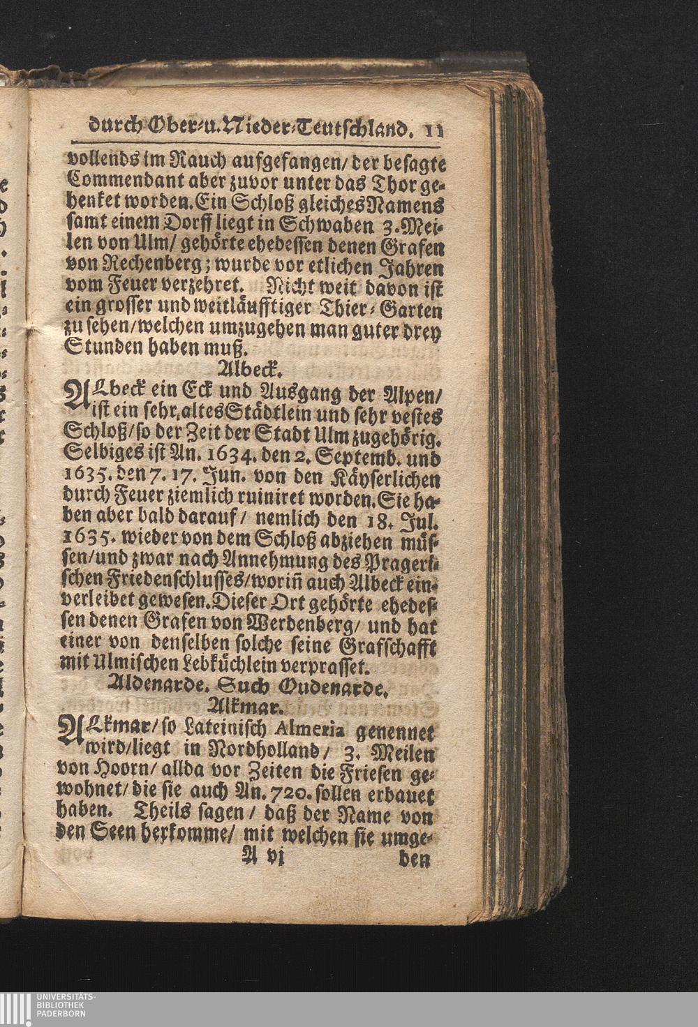 Der getreue Reiß-Gefert durch Ober- und Nieder-Teutschland : Das ist: Grundrichtige und ausführliche Abhandlung derer jenigen Residenzien/ Städte/ Schlösser/ Vestungen/ Städtlein und nahmhafften Markflecken/ welche so wol in Ober- als Nieder-Teutschland/ einem Reisenden sich hin und wieder vorstellig machen und zwar solcher Gestalt/ daß darinn derer Ursprung/ Aufnahm/ Fortification/ Raritäten/ herrliche Gebäue/ und Glück- und Unglücks-Fälle bis auf gegenwärtige Zeit fortgesetzt enthalten. Dabey auch noch über das ein absonderlicher kurz-gefasster Weegweiser angehänget zu finden/ worinnen klärlich zu sehen, wie viel Meilen ein Ort von dem andern entlegen. Alles aus denen bewährtesten Scribenten hervorgesuchet/ zum Nutz-Ergötzen mitgetheilet ...