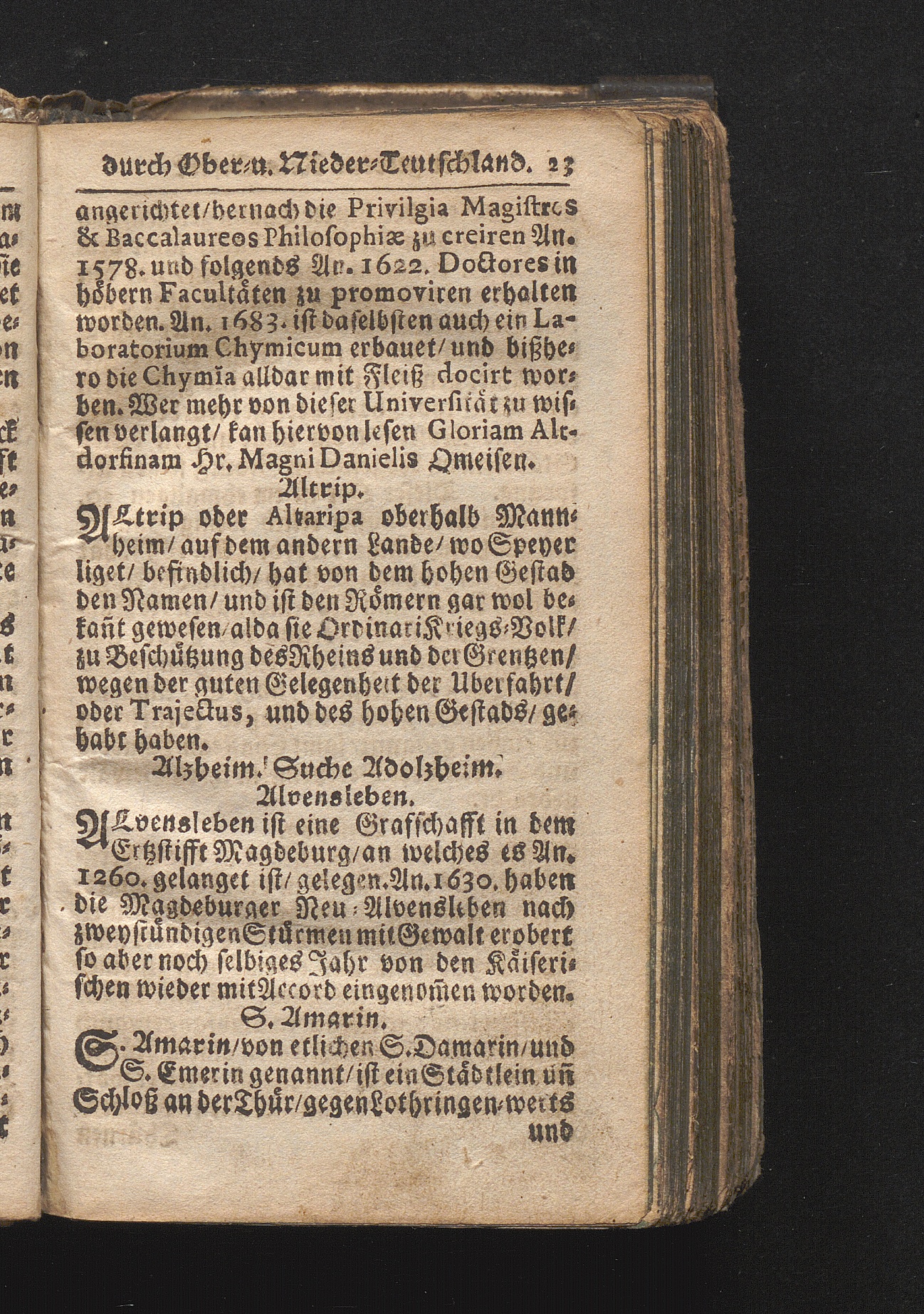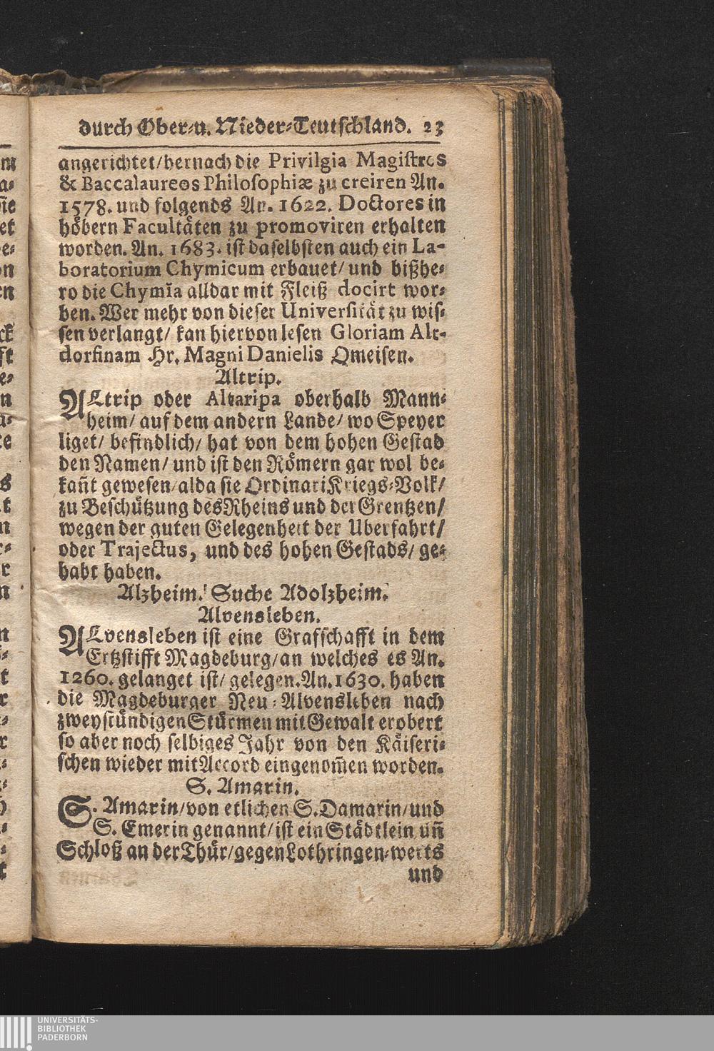 Der getreue Reiß-Gefert durch Ober- und Nieder-Teutschland : Das ist: Grundrichtige und ausführliche Abhandlung derer jenigen Residenzien/ Städte/ Schlösser/ Vestungen/ Städtlein und nahmhafften Markflecken/ welche so wol in Ober- als Nieder-Teutschland/ einem Reisenden sich hin und wieder vorstellig machen und zwar solcher Gestalt/ daß darinn derer Ursprung/ Aufnahm/ Fortification/ Raritäten/ herrliche Gebäue/ und Glück- und Unglücks-Fälle bis auf gegenwärtige Zeit fortgesetzt enthalten. Dabey auch noch über das ein absonderlicher kurz-gefasster Weegweiser angehänget zu finden/ worinnen klärlich zu sehen, wie viel Meilen ein Ort von dem andern entlegen. Alles aus denen bewährtesten Scribenten hervorgesuchet/ zum Nutz-Ergötzen mitgetheilet ...