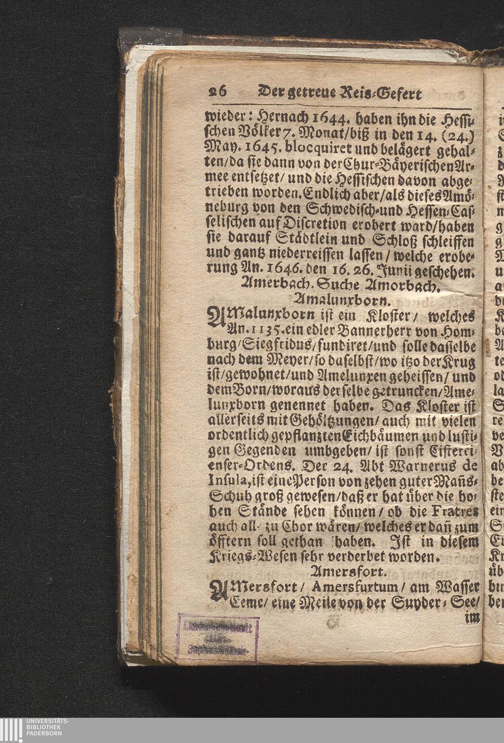 Der getreue Reiß-Gefert durch Ober- und Nieder-Teutschland : Das ist: Grundrichtige und ausführliche Abhandlung derer jenigen Residenzien/ Städte/ Schlösser/ Vestungen/ Städtlein und nahmhafften Markflecken/ welche so wol in Ober- als Nieder-Teutschland/ einem Reisenden sich hin und wieder vorstellig machen und zwar solcher Gestalt/ daß darinn derer Ursprung/ Aufnahm/ Fortification/ Raritäten/ herrliche Gebäue/ und Glück- und Unglücks-Fälle bis auf gegenwärtige Zeit fortgesetzt enthalten. Dabey auch noch über das ein absonderlicher kurz-gefasster Weegweiser angehänget zu finden/ worinnen klärlich zu sehen, wie viel Meilen ein Ort von dem andern entlegen. Alles aus denen bewährtesten Scribenten hervorgesuchet/ zum Nutz-Ergötzen mitgetheilet ...
