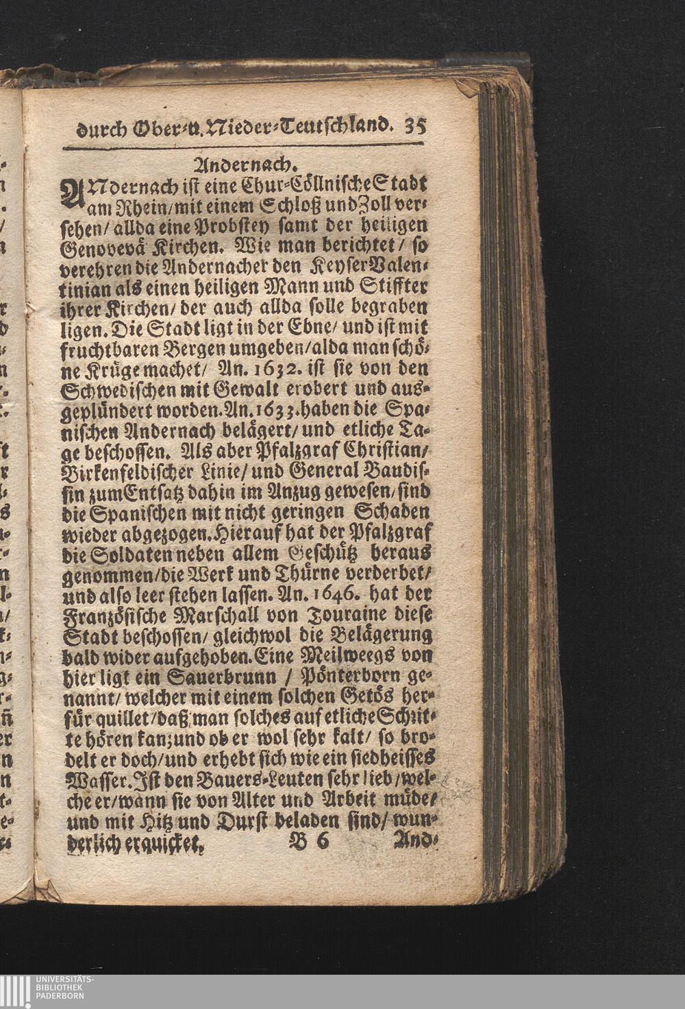 Der getreue Reiß-Gefert durch Ober- und Nieder-Teutschland : Das ist: Grundrichtige und ausführliche Abhandlung derer jenigen Residenzien/ Städte/ Schlösser/ Vestungen/ Städtlein und nahmhafften Markflecken/ welche so wol in Ober- als Nieder-Teutschland/ einem Reisenden sich hin und wieder vorstellig machen und zwar solcher Gestalt/ daß darinn derer Ursprung/ Aufnahm/ Fortification/ Raritäten/ herrliche Gebäue/ und Glück- und Unglücks-Fälle bis auf gegenwärtige Zeit fortgesetzt enthalten. Dabey auch noch über das ein absonderlicher kurz-gefasster Weegweiser angehänget zu finden/ worinnen klärlich zu sehen, wie viel Meilen ein Ort von dem andern entlegen. Alles aus denen bewährtesten Scribenten hervorgesuchet/ zum Nutz-Ergötzen mitgetheilet ...