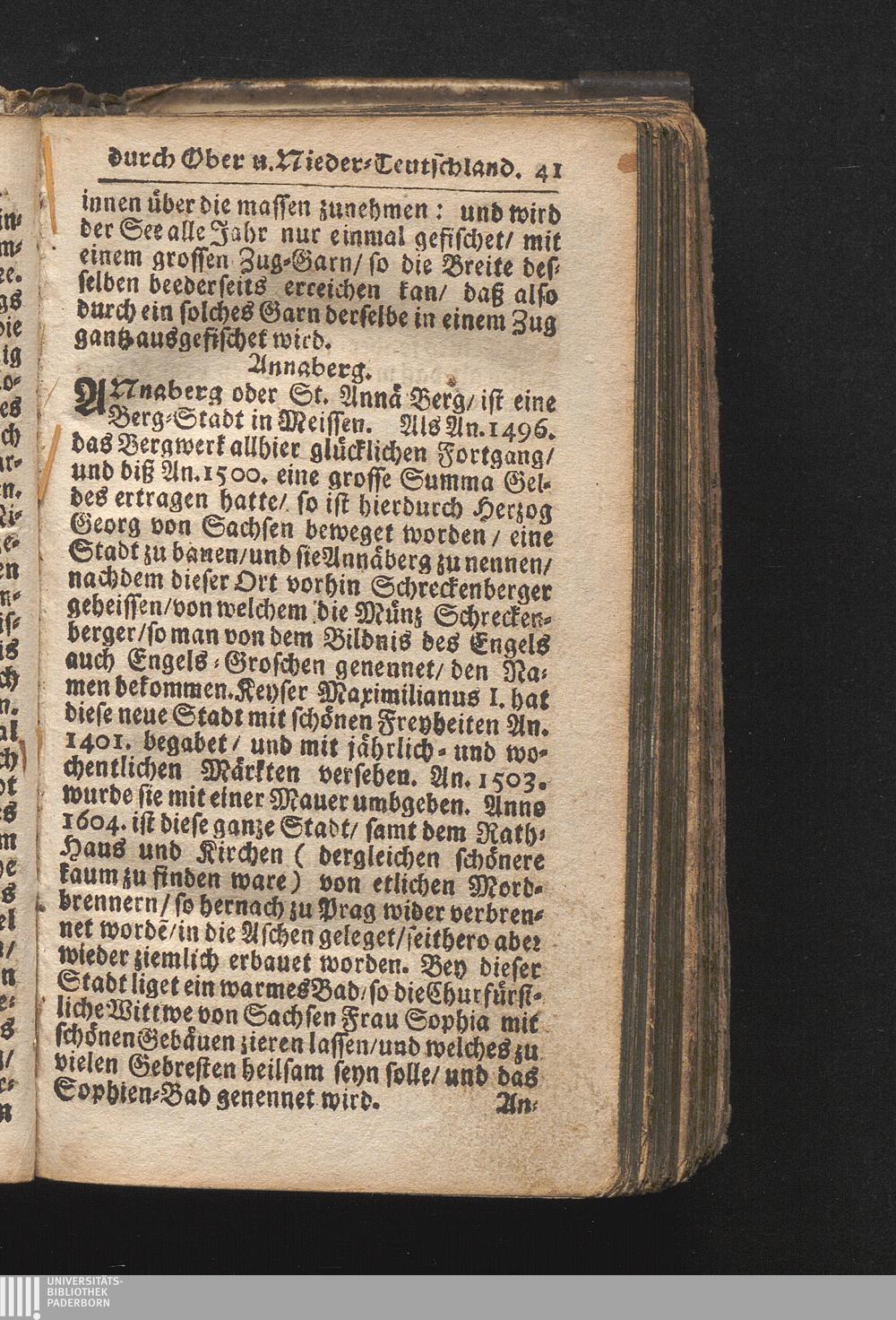Der getreue Reiß-Gefert durch Ober- und Nieder-Teutschland : Das ist: Grundrichtige und ausführliche Abhandlung derer jenigen Residenzien/ Städte/ Schlösser/ Vestungen/ Städtlein und nahmhafften Markflecken/ welche so wol in Ober- als Nieder-Teutschland/ einem Reisenden sich hin und wieder vorstellig machen und zwar solcher Gestalt/ daß darinn derer Ursprung/ Aufnahm/ Fortification/ Raritäten/ herrliche Gebäue/ und Glück- und Unglücks-Fälle bis auf gegenwärtige Zeit fortgesetzt enthalten. Dabey auch noch über das ein absonderlicher kurz-gefasster Weegweiser angehänget zu finden/ worinnen klärlich zu sehen, wie viel Meilen ein Ort von dem andern entlegen. Alles aus denen bewährtesten Scribenten hervorgesuchet/ zum Nutz-Ergötzen mitgetheilet ...