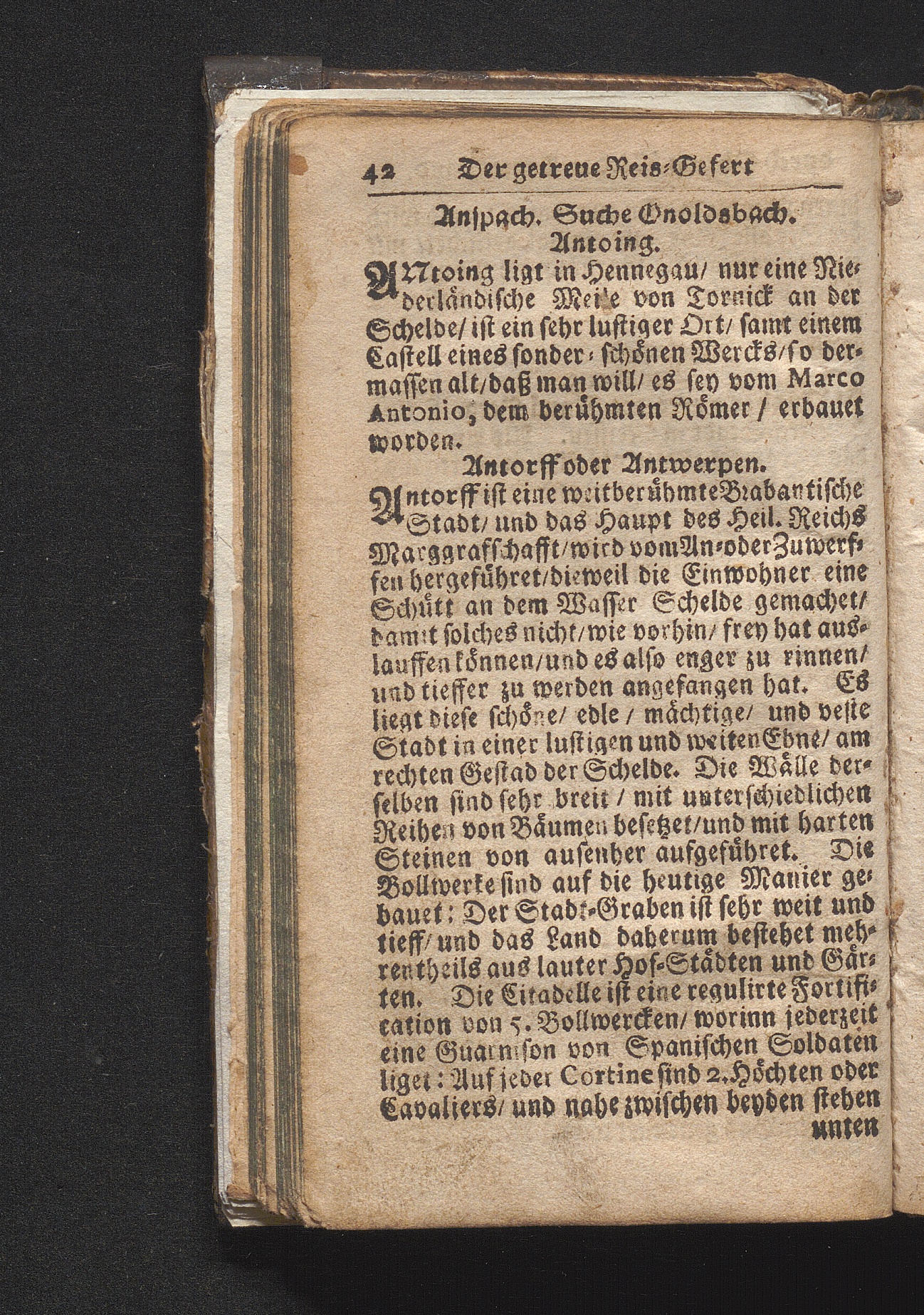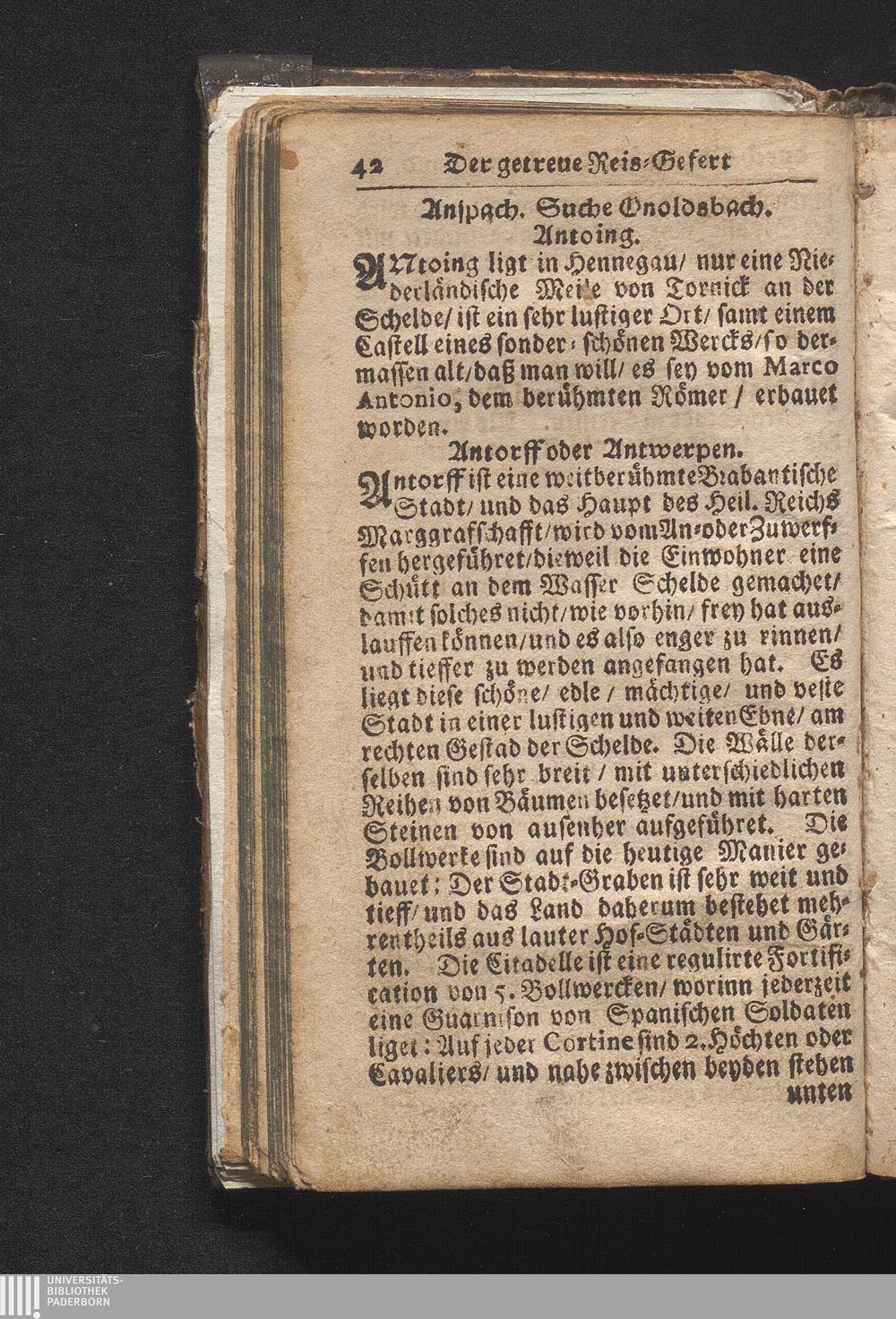Der getreue Reiß-Gefert durch Ober- und Nieder-Teutschland : Das ist: Grundrichtige und ausführliche Abhandlung derer jenigen Residenzien/ Städte/ Schlösser/ Vestungen/ Städtlein und nahmhafften Markflecken/ welche so wol in Ober- als Nieder-Teutschland/ einem Reisenden sich hin und wieder vorstellig machen und zwar solcher Gestalt/ daß darinn derer Ursprung/ Aufnahm/ Fortification/ Raritäten/ herrliche Gebäue/ und Glück- und Unglücks-Fälle bis auf gegenwärtige Zeit fortgesetzt enthalten. Dabey auch noch über das ein absonderlicher kurz-gefasster Weegweiser angehänget zu finden/ worinnen klärlich zu sehen, wie viel Meilen ein Ort von dem andern entlegen. Alles aus denen bewährtesten Scribenten hervorgesuchet/ zum Nutz-Ergötzen mitgetheilet ...