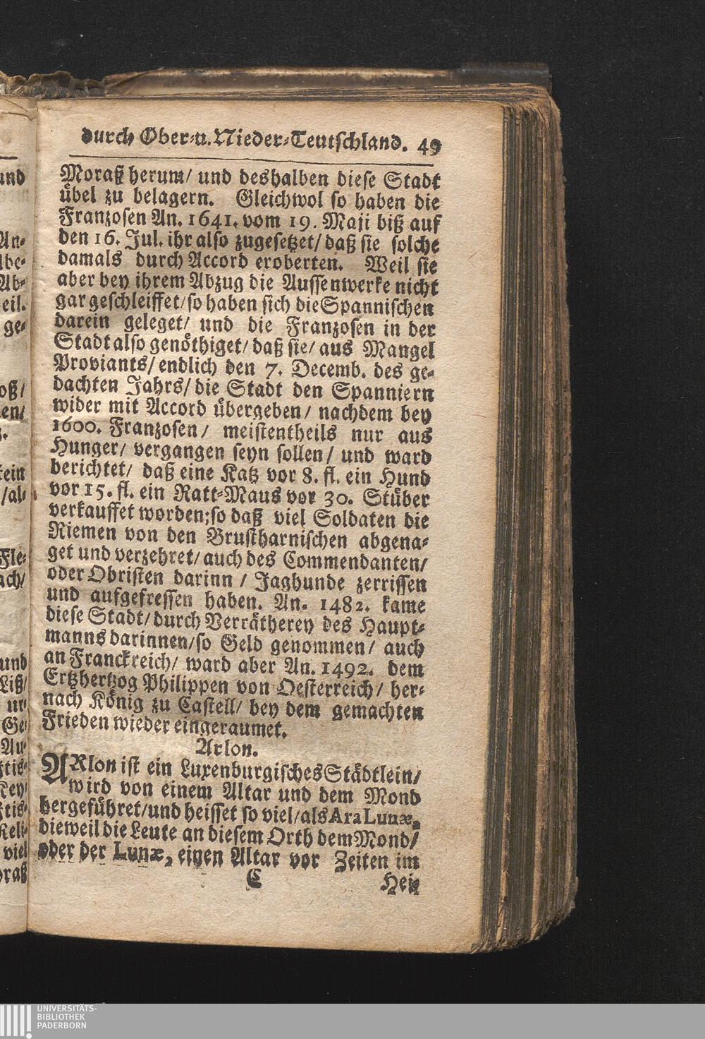 Der getreue Reiß-Gefert durch Ober- und Nieder-Teutschland : Das ist: Grundrichtige und ausführliche Abhandlung derer jenigen Residenzien/ Städte/ Schlösser/ Vestungen/ Städtlein und nahmhafften Markflecken/ welche so wol in Ober- als Nieder-Teutschland/ einem Reisenden sich hin und wieder vorstellig machen und zwar solcher Gestalt/ daß darinn derer Ursprung/ Aufnahm/ Fortification/ Raritäten/ herrliche Gebäue/ und Glück- und Unglücks-Fälle bis auf gegenwärtige Zeit fortgesetzt enthalten. Dabey auch noch über das ein absonderlicher kurz-gefasster Weegweiser angehänget zu finden/ worinnen klärlich zu sehen, wie viel Meilen ein Ort von dem andern entlegen. Alles aus denen bewährtesten Scribenten hervorgesuchet/ zum Nutz-Ergötzen mitgetheilet ...