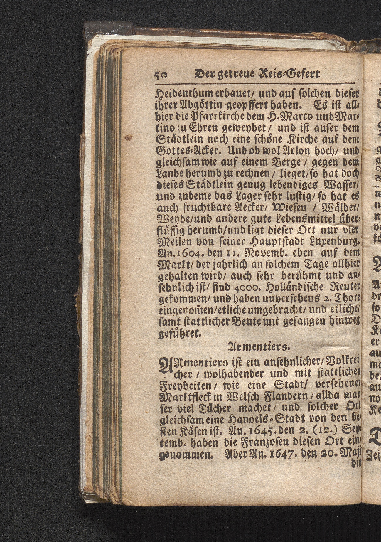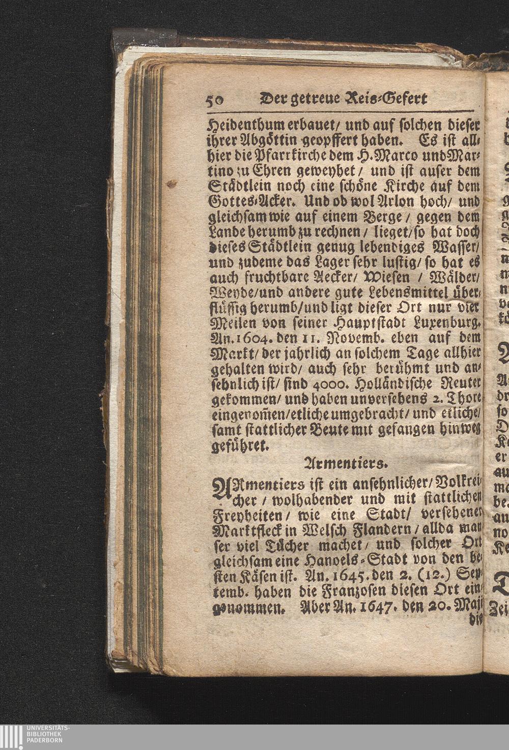 Der getreue Reiß-Gefert durch Ober- und Nieder-Teutschland : Das ist: Grundrichtige und ausführliche Abhandlung derer jenigen Residenzien/ Städte/ Schlösser/ Vestungen/ Städtlein und nahmhafften Markflecken/ welche so wol in Ober- als Nieder-Teutschland/ einem Reisenden sich hin und wieder vorstellig machen und zwar solcher Gestalt/ daß darinn derer Ursprung/ Aufnahm/ Fortification/ Raritäten/ herrliche Gebäue/ und Glück- und Unglücks-Fälle bis auf gegenwärtige Zeit fortgesetzt enthalten. Dabey auch noch über das ein absonderlicher kurz-gefasster Weegweiser angehänget zu finden/ worinnen klärlich zu sehen, wie viel Meilen ein Ort von dem andern entlegen. Alles aus denen bewährtesten Scribenten hervorgesuchet/ zum Nutz-Ergötzen mitgetheilet ...