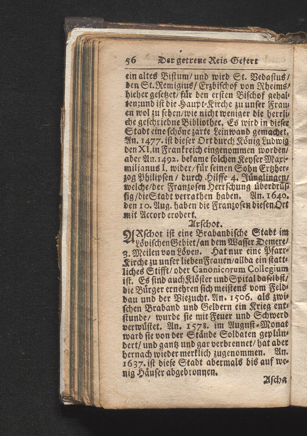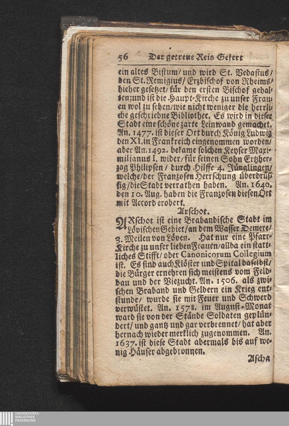 Der getreue Reiß-Gefert durch Ober- und Nieder-Teutschland : Das ist: Grundrichtige und ausführliche Abhandlung derer jenigen Residenzien/ Städte/ Schlösser/ Vestungen/ Städtlein und nahmhafften Markflecken/ welche so wol in Ober- als Nieder-Teutschland/ einem Reisenden sich hin und wieder vorstellig machen und zwar solcher Gestalt/ daß darinn derer Ursprung/ Aufnahm/ Fortification/ Raritäten/ herrliche Gebäue/ und Glück- und Unglücks-Fälle bis auf gegenwärtige Zeit fortgesetzt enthalten. Dabey auch noch über das ein absonderlicher kurz-gefasster Weegweiser angehänget zu finden/ worinnen klärlich zu sehen, wie viel Meilen ein Ort von dem andern entlegen. Alles aus denen bewährtesten Scribenten hervorgesuchet/ zum Nutz-Ergötzen mitgetheilet ...