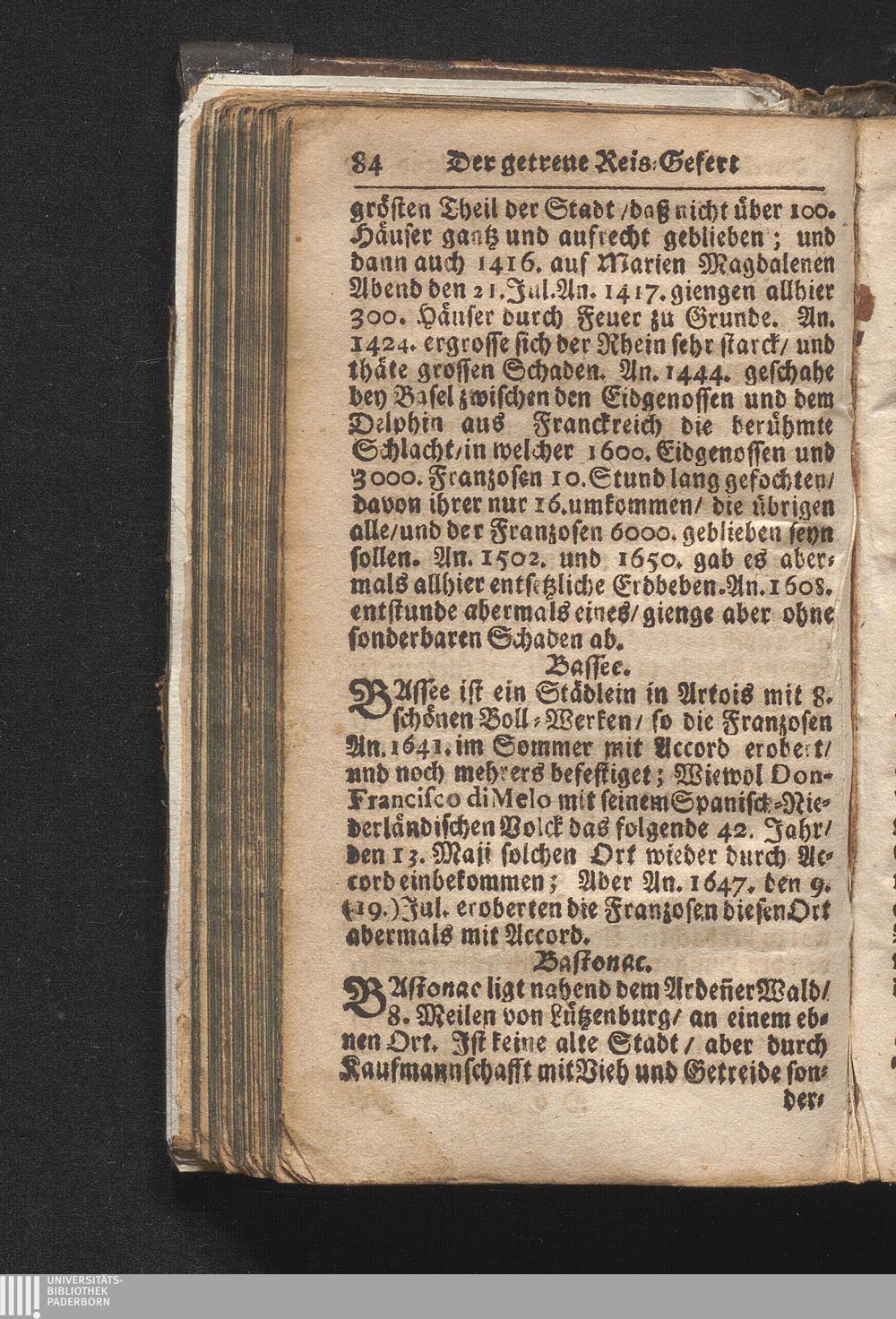 Der getreue Reiß-Gefert durch Ober- und Nieder-Teutschland : Das ist: Grundrichtige und ausführliche Abhandlung derer jenigen Residenzien/ Städte/ Schlösser/ Vestungen/ Städtlein und nahmhafften Markflecken/ welche so wol in Ober- als Nieder-Teutschland/ einem Reisenden sich hin und wieder vorstellig machen und zwar solcher Gestalt/ daß darinn derer Ursprung/ Aufnahm/ Fortification/ Raritäten/ herrliche Gebäue/ und Glück- und Unglücks-Fälle bis auf gegenwärtige Zeit fortgesetzt enthalten. Dabey auch noch über das ein absonderlicher kurz-gefasster Weegweiser angehänget zu finden/ worinnen klärlich zu sehen, wie viel Meilen ein Ort von dem andern entlegen. Alles aus denen bewährtesten Scribenten hervorgesuchet/ zum Nutz-Ergötzen mitgetheilet ...