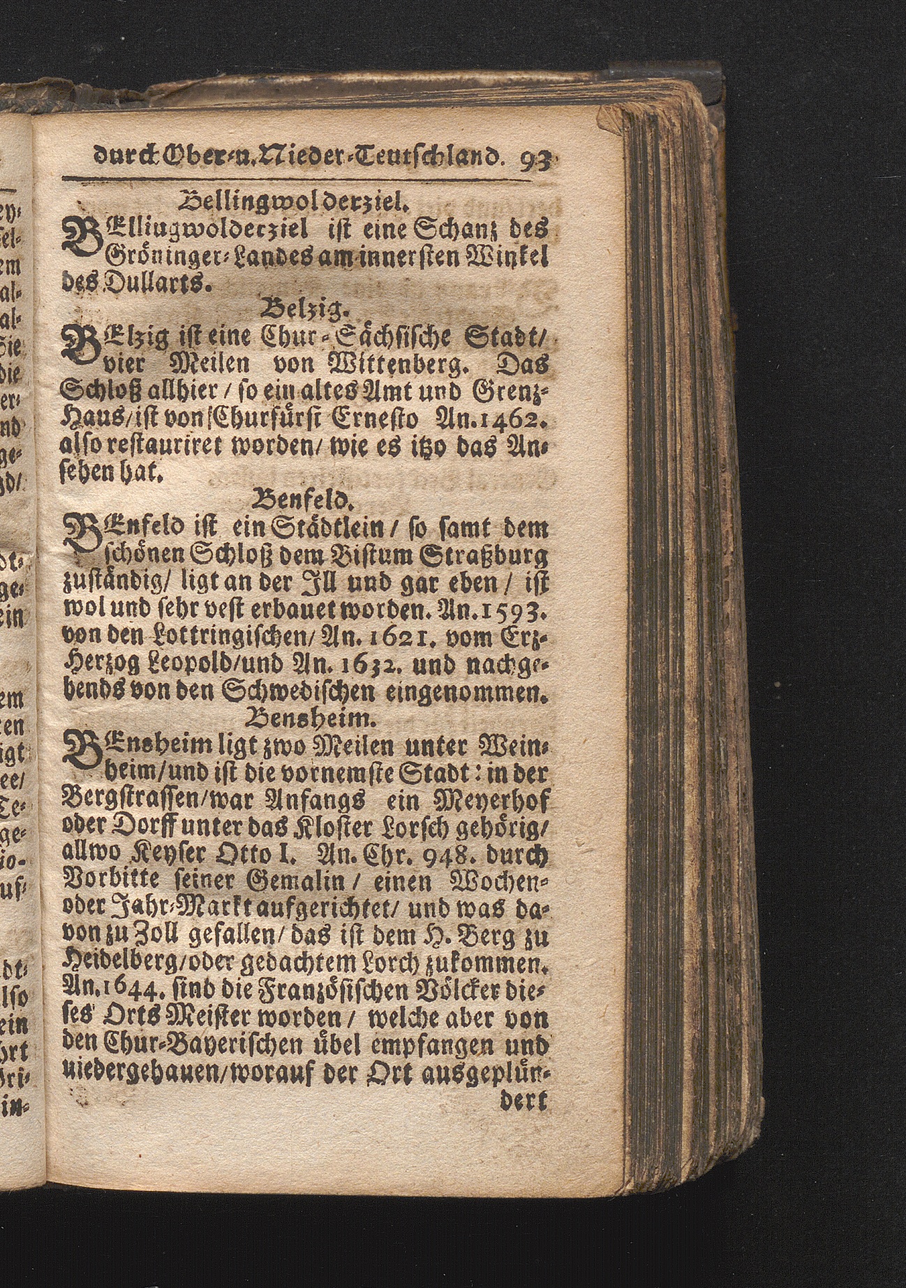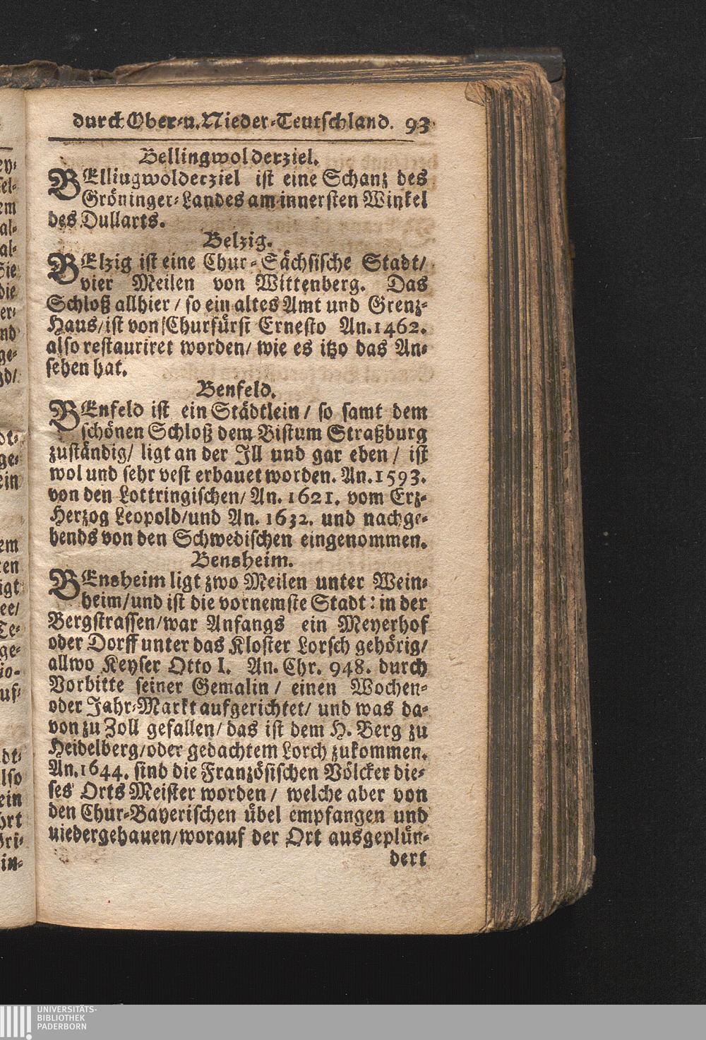 Der getreue Reiß-Gefert durch Ober- und Nieder-Teutschland : Das ist: Grundrichtige und ausführliche Abhandlung derer jenigen Residenzien/ Städte/ Schlösser/ Vestungen/ Städtlein und nahmhafften Markflecken/ welche so wol in Ober- als Nieder-Teutschland/ einem Reisenden sich hin und wieder vorstellig machen und zwar solcher Gestalt/ daß darinn derer Ursprung/ Aufnahm/ Fortification/ Raritäten/ herrliche Gebäue/ und Glück- und Unglücks-Fälle bis auf gegenwärtige Zeit fortgesetzt enthalten. Dabey auch noch über das ein absonderlicher kurz-gefasster Weegweiser angehänget zu finden/ worinnen klärlich zu sehen, wie viel Meilen ein Ort von dem andern entlegen. Alles aus denen bewährtesten Scribenten hervorgesuchet/ zum Nutz-Ergötzen mitgetheilet ...