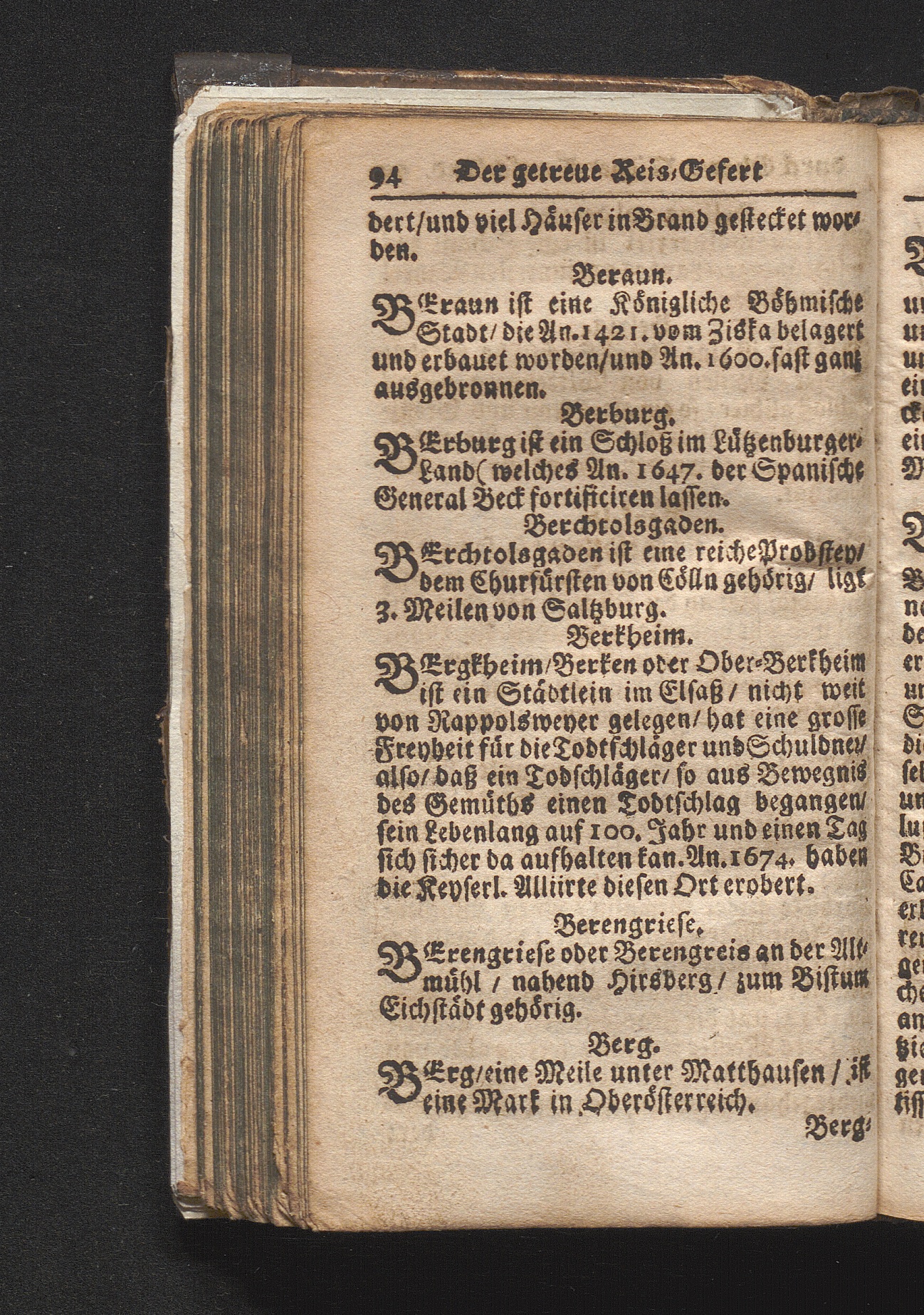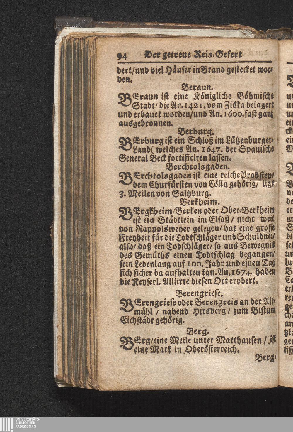 Der getreue Reiß-Gefert durch Ober- und Nieder-Teutschland : Das ist: Grundrichtige und ausführliche Abhandlung derer jenigen Residenzien/ Städte/ Schlösser/ Vestungen/ Städtlein und nahmhafften Markflecken/ welche so wol in Ober- als Nieder-Teutschland/ einem Reisenden sich hin und wieder vorstellig machen und zwar solcher Gestalt/ daß darinn derer Ursprung/ Aufnahm/ Fortification/ Raritäten/ herrliche Gebäue/ und Glück- und Unglücks-Fälle bis auf gegenwärtige Zeit fortgesetzt enthalten. Dabey auch noch über das ein absonderlicher kurz-gefasster Weegweiser angehänget zu finden/ worinnen klärlich zu sehen, wie viel Meilen ein Ort von dem andern entlegen. Alles aus denen bewährtesten Scribenten hervorgesuchet/ zum Nutz-Ergötzen mitgetheilet ...
