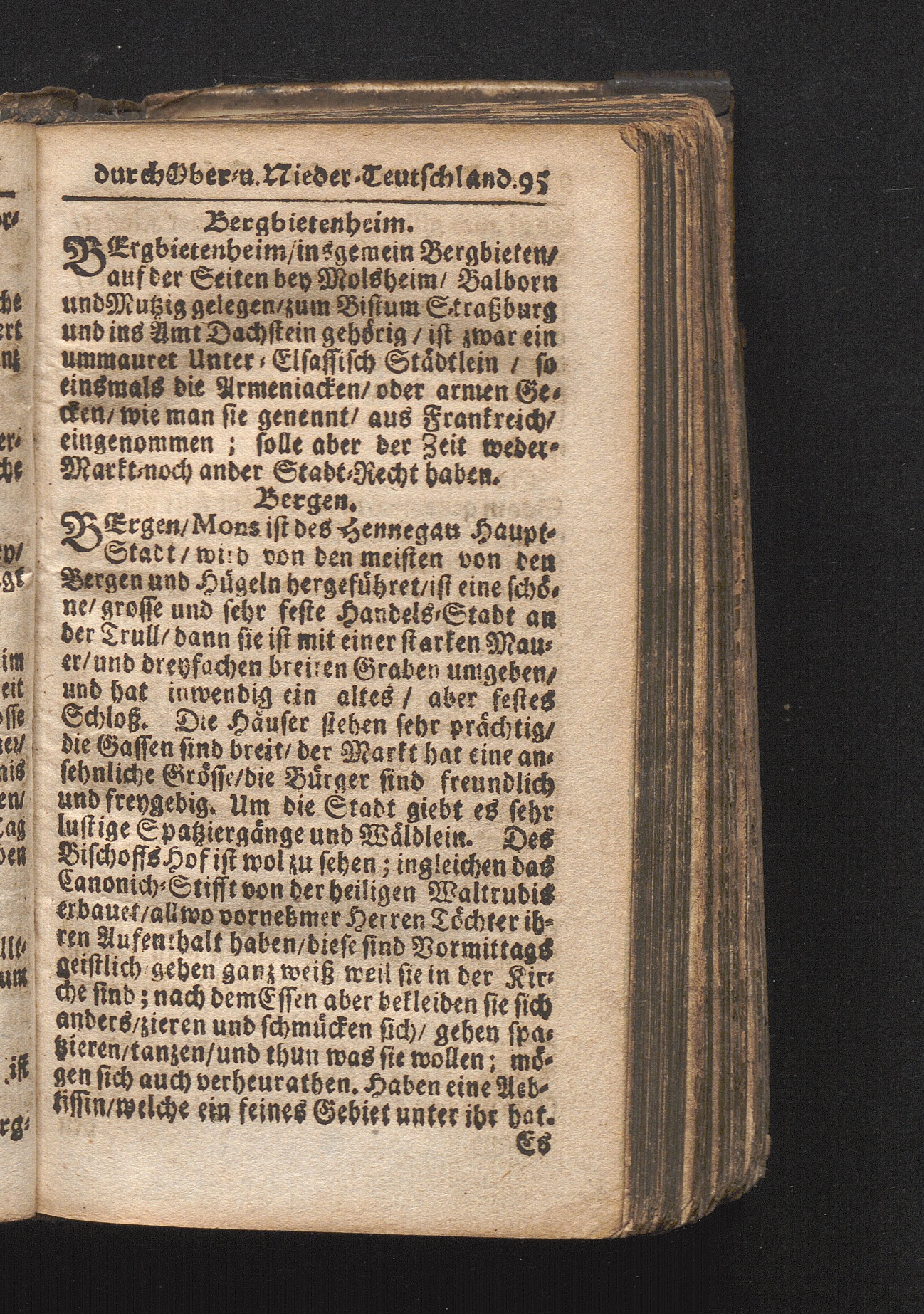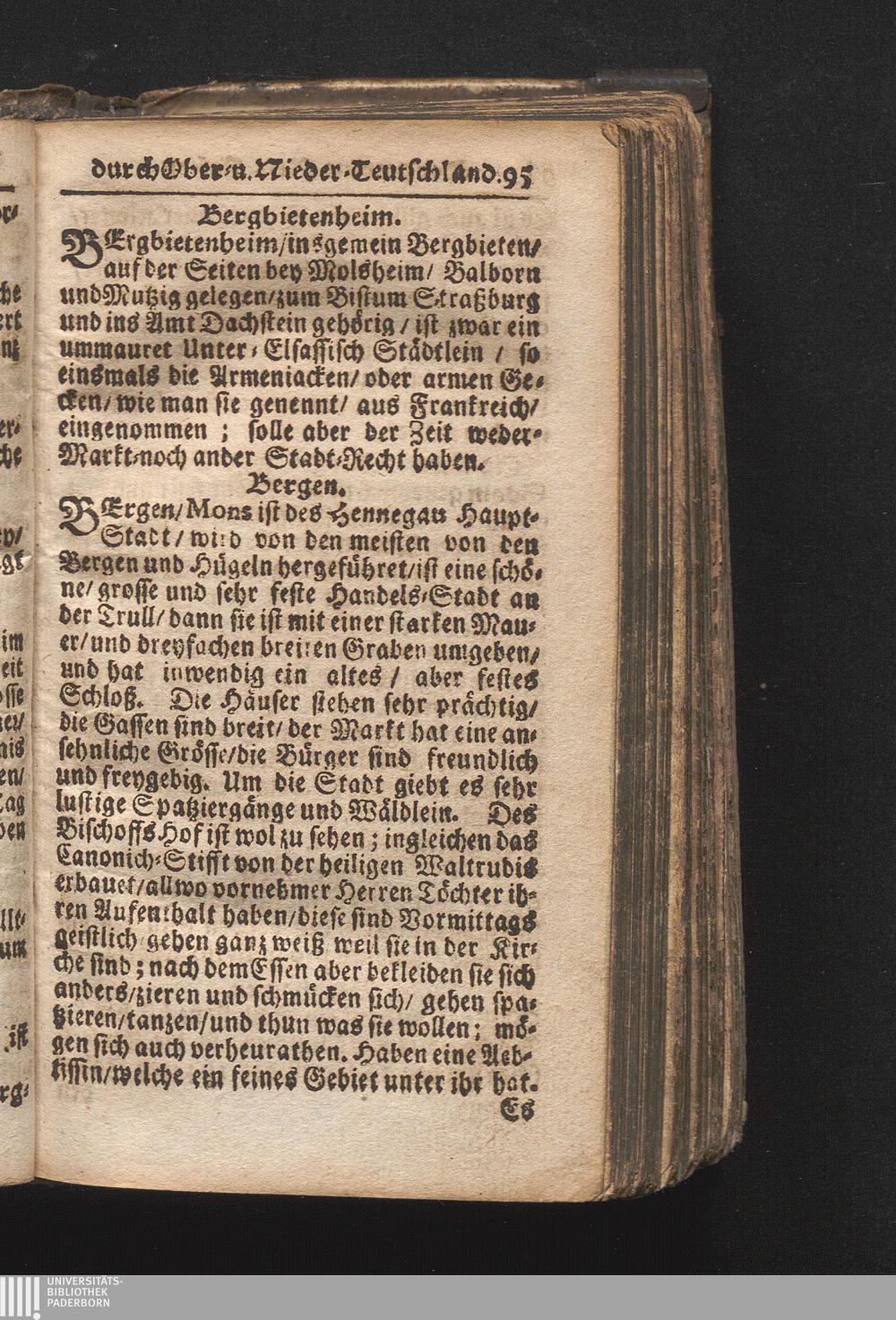 Der getreue Reiß-Gefert durch Ober- und Nieder-Teutschland : Das ist: Grundrichtige und ausführliche Abhandlung derer jenigen Residenzien/ Städte/ Schlösser/ Vestungen/ Städtlein und nahmhafften Markflecken/ welche so wol in Ober- als Nieder-Teutschland/ einem Reisenden sich hin und wieder vorstellig machen und zwar solcher Gestalt/ daß darinn derer Ursprung/ Aufnahm/ Fortification/ Raritäten/ herrliche Gebäue/ und Glück- und Unglücks-Fälle bis auf gegenwärtige Zeit fortgesetzt enthalten. Dabey auch noch über das ein absonderlicher kurz-gefasster Weegweiser angehänget zu finden/ worinnen klärlich zu sehen, wie viel Meilen ein Ort von dem andern entlegen. Alles aus denen bewährtesten Scribenten hervorgesuchet/ zum Nutz-Ergötzen mitgetheilet ...