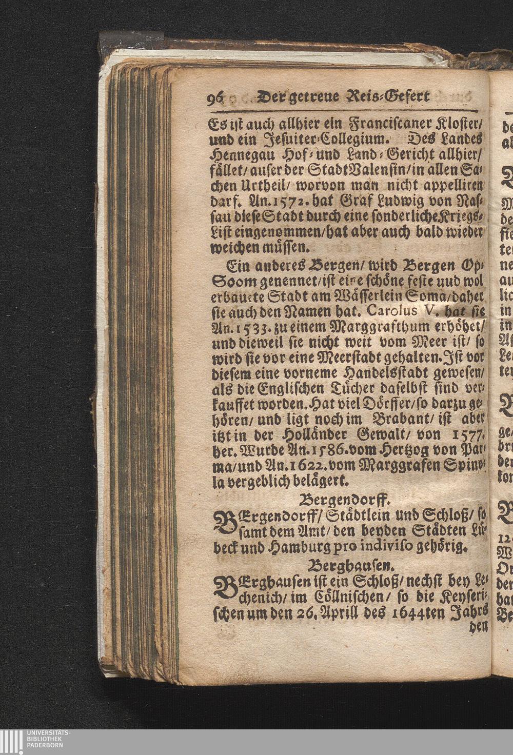 Der getreue Reiß-Gefert durch Ober- und Nieder-Teutschland : Das ist: Grundrichtige und ausführliche Abhandlung derer jenigen Residenzien/ Städte/ Schlösser/ Vestungen/ Städtlein und nahmhafften Markflecken/ welche so wol in Ober- als Nieder-Teutschland/ einem Reisenden sich hin und wieder vorstellig machen und zwar solcher Gestalt/ daß darinn derer Ursprung/ Aufnahm/ Fortification/ Raritäten/ herrliche Gebäue/ und Glück- und Unglücks-Fälle bis auf gegenwärtige Zeit fortgesetzt enthalten. Dabey auch noch über das ein absonderlicher kurz-gefasster Weegweiser angehänget zu finden/ worinnen klärlich zu sehen, wie viel Meilen ein Ort von dem andern entlegen. Alles aus denen bewährtesten Scribenten hervorgesuchet/ zum Nutz-Ergötzen mitgetheilet ...