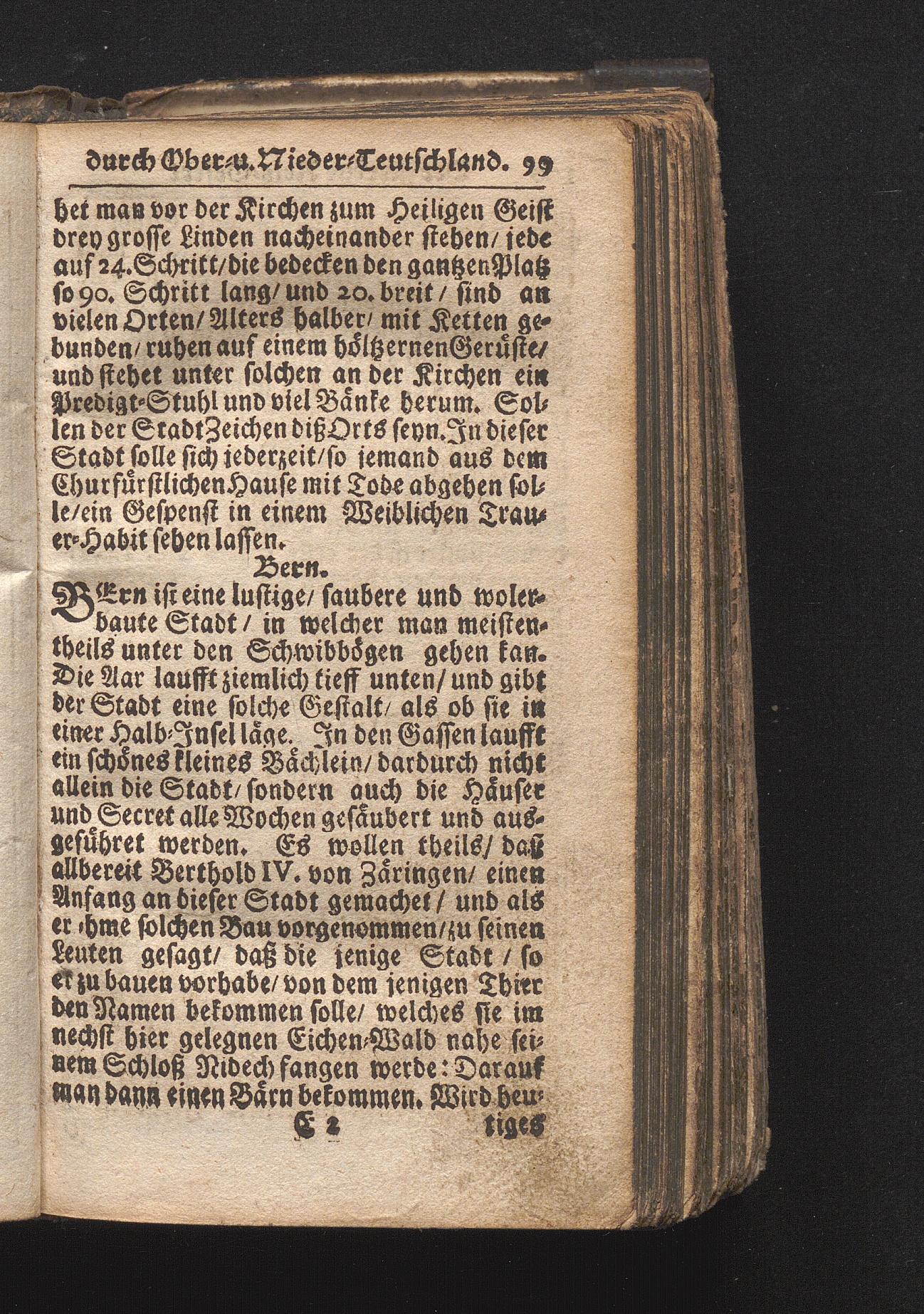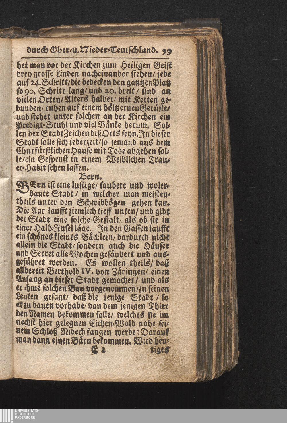 Der getreue Reiß-Gefert durch Ober- und Nieder-Teutschland : Das ist: Grundrichtige und ausführliche Abhandlung derer jenigen Residenzien/ Städte/ Schlösser/ Vestungen/ Städtlein und nahmhafften Markflecken/ welche so wol in Ober- als Nieder-Teutschland/ einem Reisenden sich hin und wieder vorstellig machen und zwar solcher Gestalt/ daß darinn derer Ursprung/ Aufnahm/ Fortification/ Raritäten/ herrliche Gebäue/ und Glück- und Unglücks-Fälle bis auf gegenwärtige Zeit fortgesetzt enthalten. Dabey auch noch über das ein absonderlicher kurz-gefasster Weegweiser angehänget zu finden/ worinnen klärlich zu sehen, wie viel Meilen ein Ort von dem andern entlegen. Alles aus denen bewährtesten Scribenten hervorgesuchet/ zum Nutz-Ergötzen mitgetheilet ...