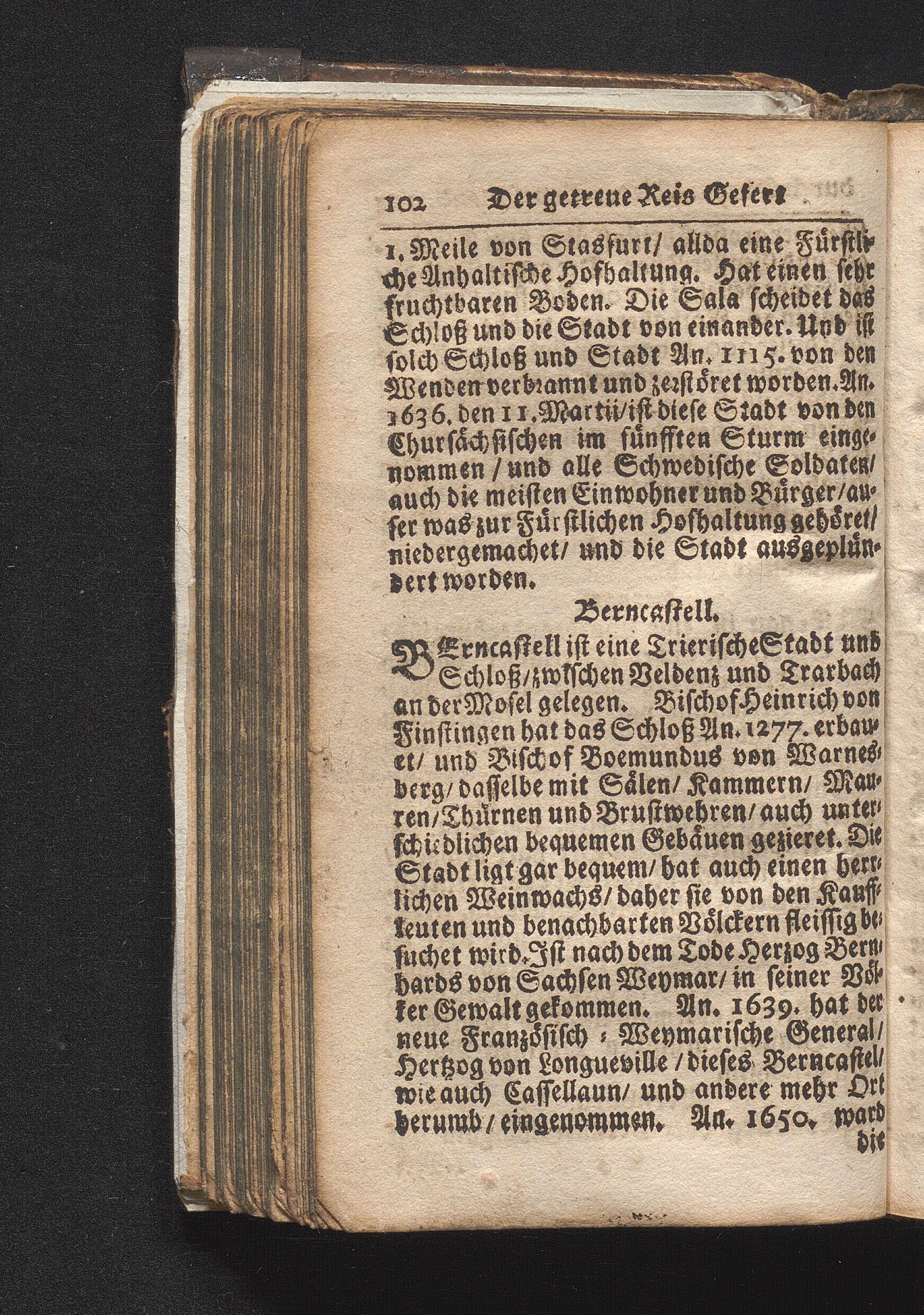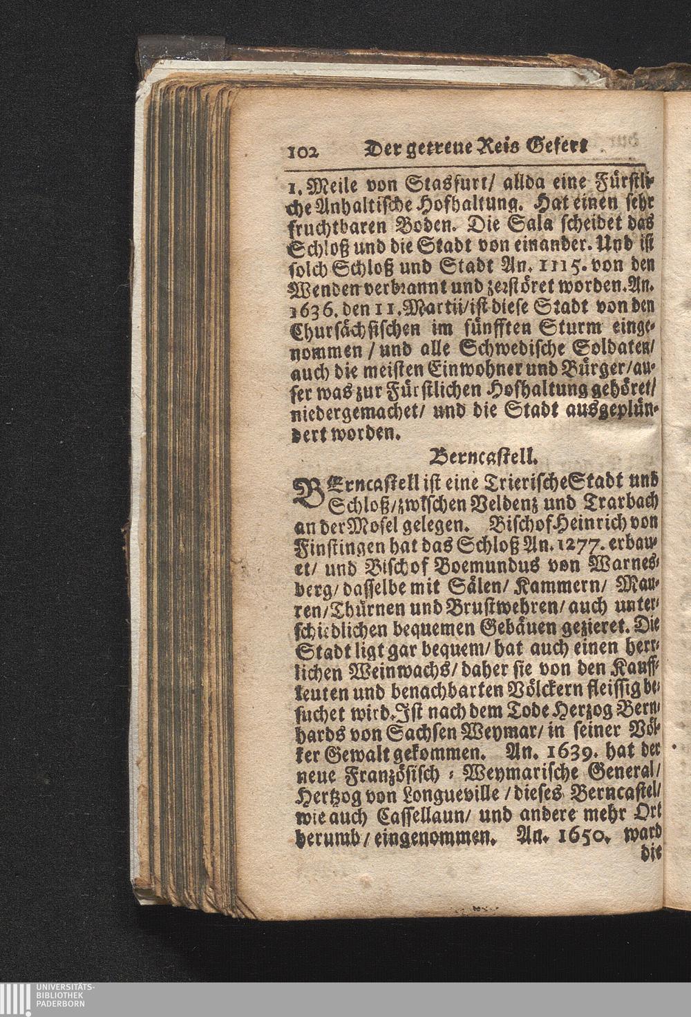 Der getreue Reiß-Gefert durch Ober- und Nieder-Teutschland : Das ist: Grundrichtige und ausführliche Abhandlung derer jenigen Residenzien/ Städte/ Schlösser/ Vestungen/ Städtlein und nahmhafften Markflecken/ welche so wol in Ober- als Nieder-Teutschland/ einem Reisenden sich hin und wieder vorstellig machen und zwar solcher Gestalt/ daß darinn derer Ursprung/ Aufnahm/ Fortification/ Raritäten/ herrliche Gebäue/ und Glück- und Unglücks-Fälle bis auf gegenwärtige Zeit fortgesetzt enthalten. Dabey auch noch über das ein absonderlicher kurz-gefasster Weegweiser angehänget zu finden/ worinnen klärlich zu sehen, wie viel Meilen ein Ort von dem andern entlegen. Alles aus denen bewährtesten Scribenten hervorgesuchet/ zum Nutz-Ergötzen mitgetheilet ...