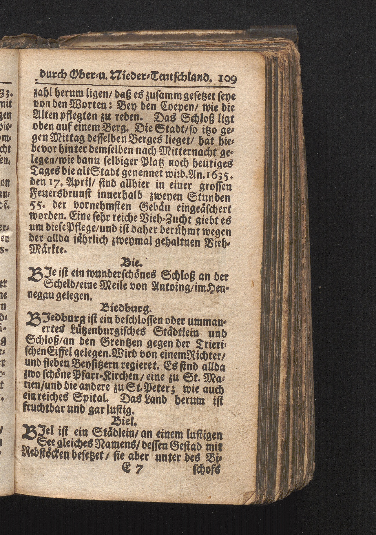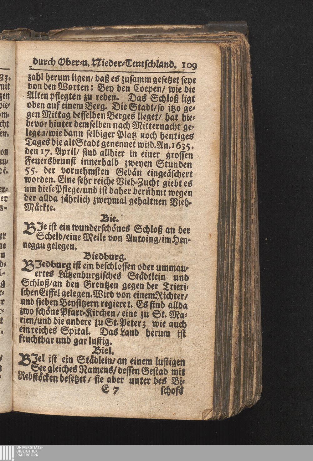 Der getreue Reiß-Gefert durch Ober- und Nieder-Teutschland : Das ist: Grundrichtige und ausführliche Abhandlung derer jenigen Residenzien/ Städte/ Schlösser/ Vestungen/ Städtlein und nahmhafften Markflecken/ welche so wol in Ober- als Nieder-Teutschland/ einem Reisenden sich hin und wieder vorstellig machen und zwar solcher Gestalt/ daß darinn derer Ursprung/ Aufnahm/ Fortification/ Raritäten/ herrliche Gebäue/ und Glück- und Unglücks-Fälle bis auf gegenwärtige Zeit fortgesetzt enthalten. Dabey auch noch über das ein absonderlicher kurz-gefasster Weegweiser angehänget zu finden/ worinnen klärlich zu sehen, wie viel Meilen ein Ort von dem andern entlegen. Alles aus denen bewährtesten Scribenten hervorgesuchet/ zum Nutz-Ergötzen mitgetheilet ...