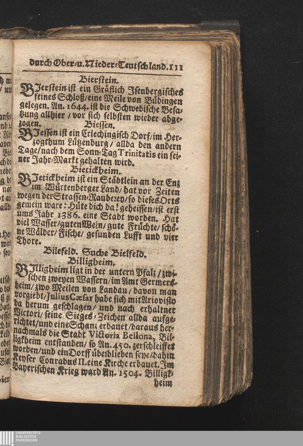 Der getreue Reiß-Gefert durch Ober- und Nieder-Teutschland : Das ist: Grundrichtige und ausführliche Abhandlung derer jenigen Residenzien/ Städte/ Schlösser/ Vestungen/ Städtlein und nahmhafften Markflecken/ welche so wol in Ober- als Nieder-Teutschland/ einem Reisenden sich hin und wieder vorstellig machen und zwar solcher Gestalt/ daß darinn derer Ursprung/ Aufnahm/ Fortification/ Raritäten/ herrliche Gebäue/ und Glück- und Unglücks-Fälle bis auf gegenwärtige Zeit fortgesetzt enthalten. Dabey auch noch über das ein absonderlicher kurz-gefasster Weegweiser angehänget zu finden/ worinnen klärlich zu sehen, wie viel Meilen ein Ort von dem andern entlegen. Alles aus denen bewährtesten Scribenten hervorgesuchet/ zum Nutz-Ergötzen mitgetheilet ...
