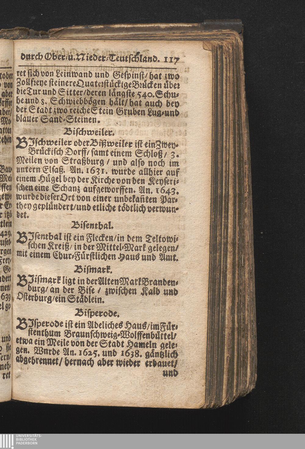Der getreue Reiß-Gefert durch Ober- und Nieder-Teutschland : Das ist: Grundrichtige und ausführliche Abhandlung derer jenigen Residenzien/ Städte/ Schlösser/ Vestungen/ Städtlein und nahmhafften Markflecken/ welche so wol in Ober- als Nieder-Teutschland/ einem Reisenden sich hin und wieder vorstellig machen und zwar solcher Gestalt/ daß darinn derer Ursprung/ Aufnahm/ Fortification/ Raritäten/ herrliche Gebäue/ und Glück- und Unglücks-Fälle bis auf gegenwärtige Zeit fortgesetzt enthalten. Dabey auch noch über das ein absonderlicher kurz-gefasster Weegweiser angehänget zu finden/ worinnen klärlich zu sehen, wie viel Meilen ein Ort von dem andern entlegen. Alles aus denen bewährtesten Scribenten hervorgesuchet/ zum Nutz-Ergötzen mitgetheilet ...