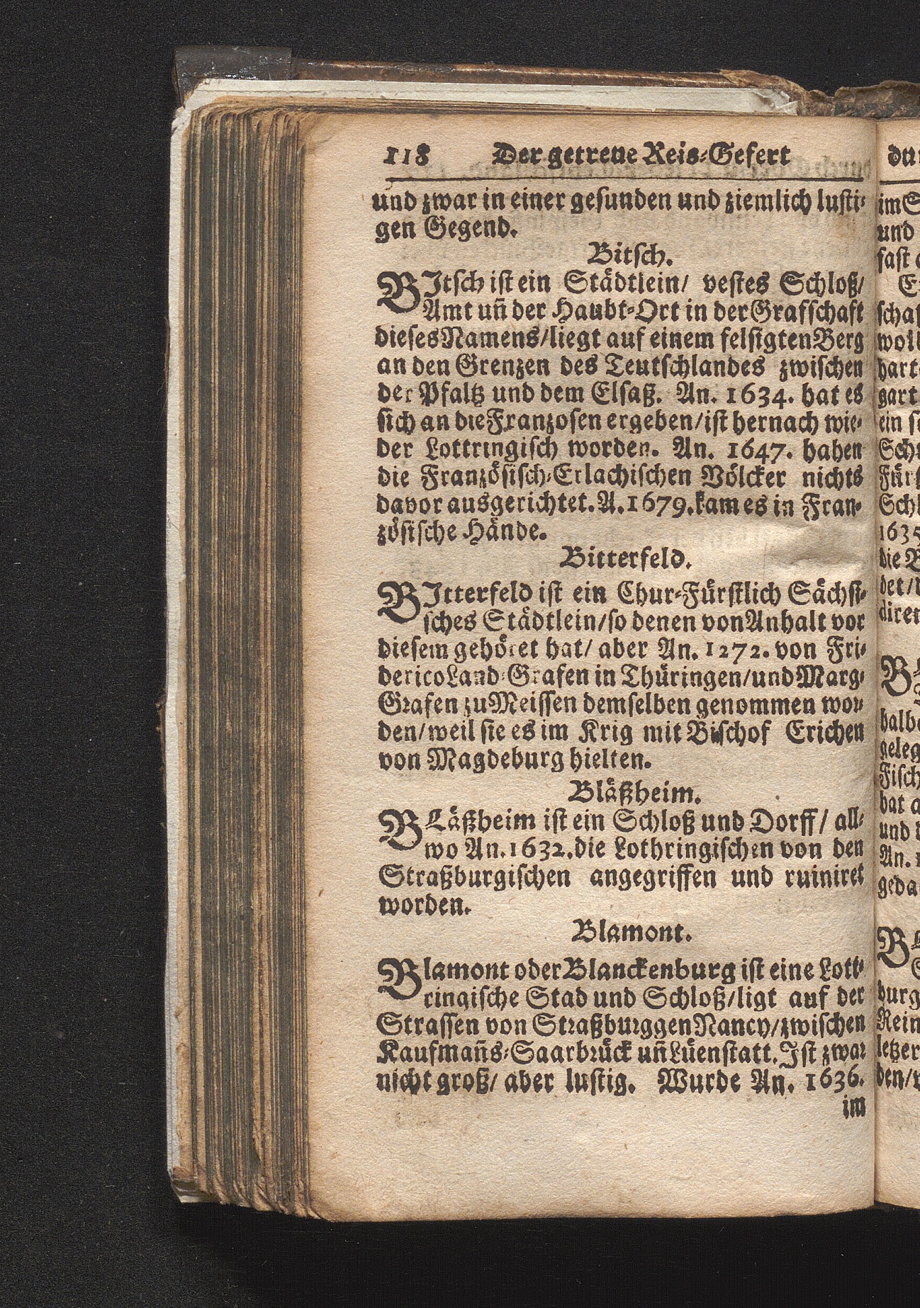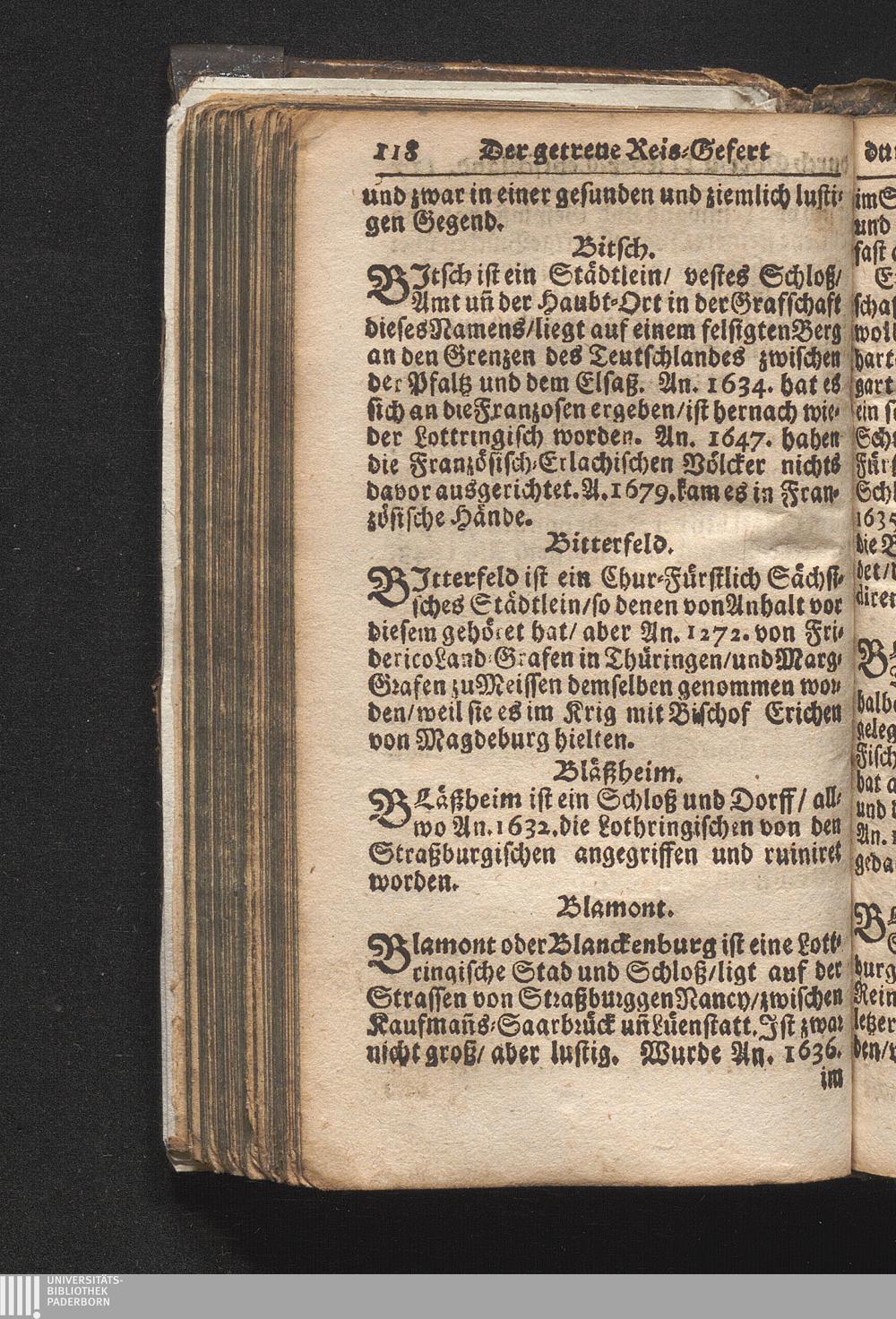 Der getreue Reiß-Gefert durch Ober- und Nieder-Teutschland : Das ist: Grundrichtige und ausführliche Abhandlung derer jenigen Residenzien/ Städte/ Schlösser/ Vestungen/ Städtlein und nahmhafften Markflecken/ welche so wol in Ober- als Nieder-Teutschland/ einem Reisenden sich hin und wieder vorstellig machen und zwar solcher Gestalt/ daß darinn derer Ursprung/ Aufnahm/ Fortification/ Raritäten/ herrliche Gebäue/ und Glück- und Unglücks-Fälle bis auf gegenwärtige Zeit fortgesetzt enthalten. Dabey auch noch über das ein absonderlicher kurz-gefasster Weegweiser angehänget zu finden/ worinnen klärlich zu sehen, wie viel Meilen ein Ort von dem andern entlegen. Alles aus denen bewährtesten Scribenten hervorgesuchet/ zum Nutz-Ergötzen mitgetheilet ...