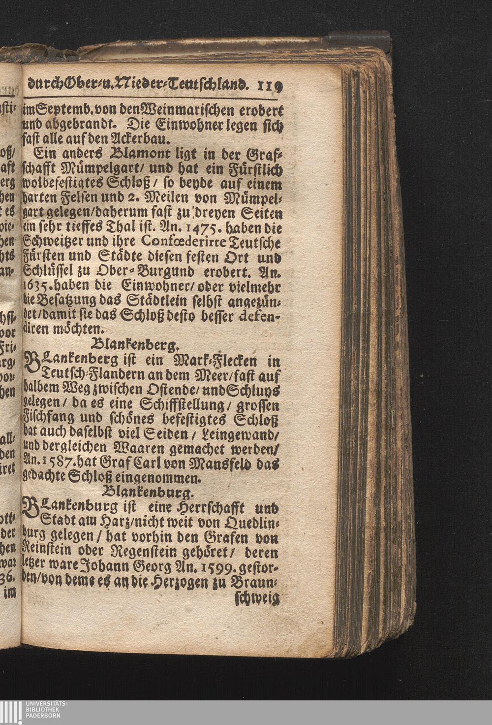 Der getreue Reiß-Gefert durch Ober- und Nieder-Teutschland : Das ist: Grundrichtige und ausführliche Abhandlung derer jenigen Residenzien/ Städte/ Schlösser/ Vestungen/ Städtlein und nahmhafften Markflecken/ welche so wol in Ober- als Nieder-Teutschland/ einem Reisenden sich hin und wieder vorstellig machen und zwar solcher Gestalt/ daß darinn derer Ursprung/ Aufnahm/ Fortification/ Raritäten/ herrliche Gebäue/ und Glück- und Unglücks-Fälle bis auf gegenwärtige Zeit fortgesetzt enthalten. Dabey auch noch über das ein absonderlicher kurz-gefasster Weegweiser angehänget zu finden/ worinnen klärlich zu sehen, wie viel Meilen ein Ort von dem andern entlegen. Alles aus denen bewährtesten Scribenten hervorgesuchet/ zum Nutz-Ergötzen mitgetheilet ...